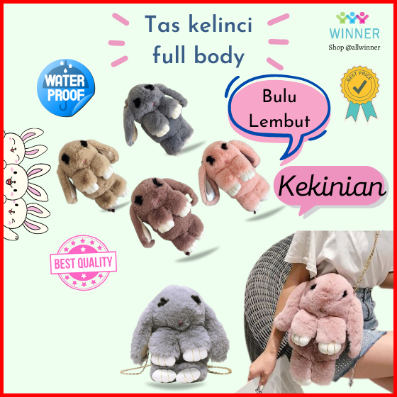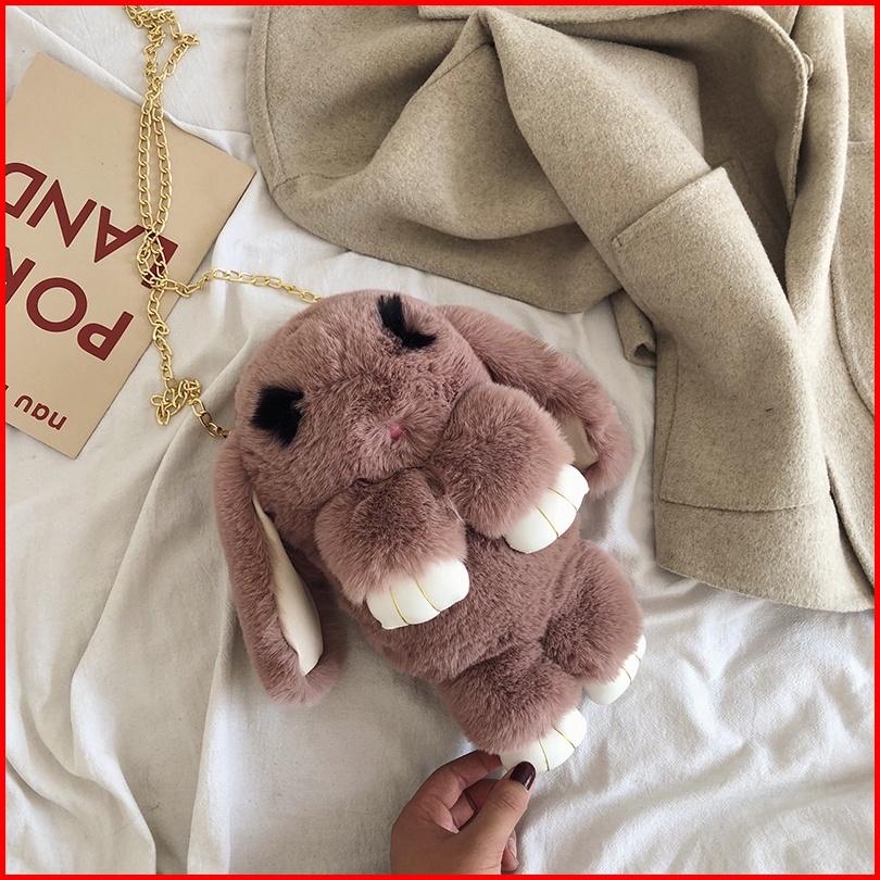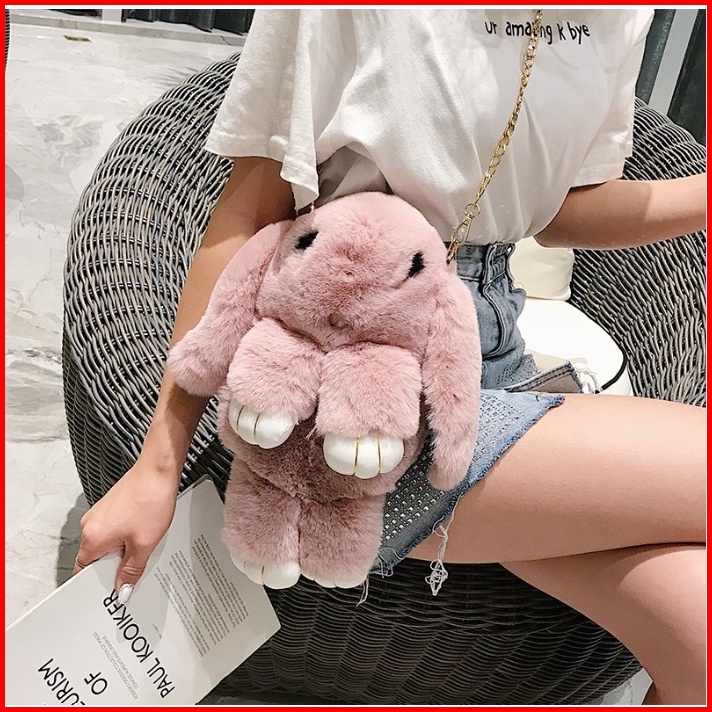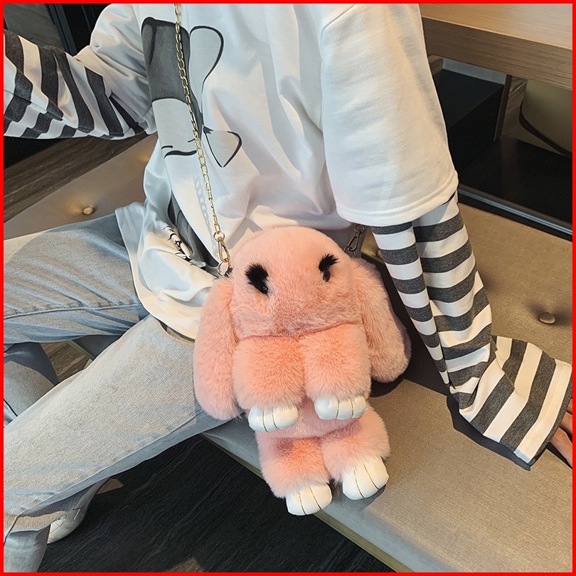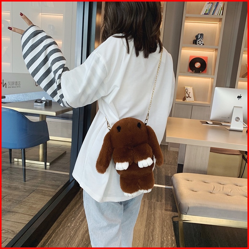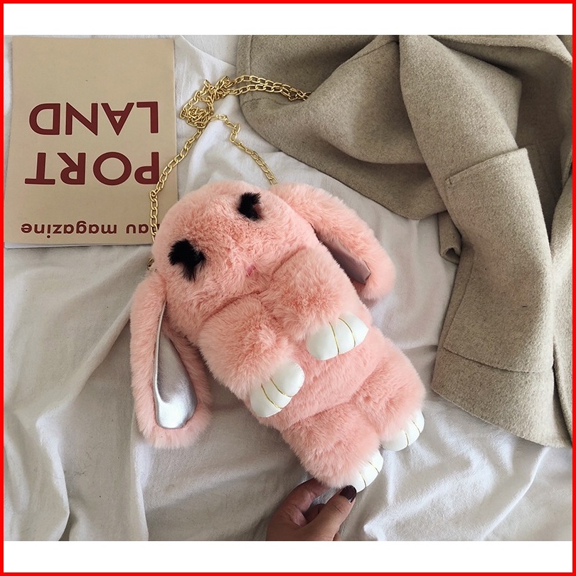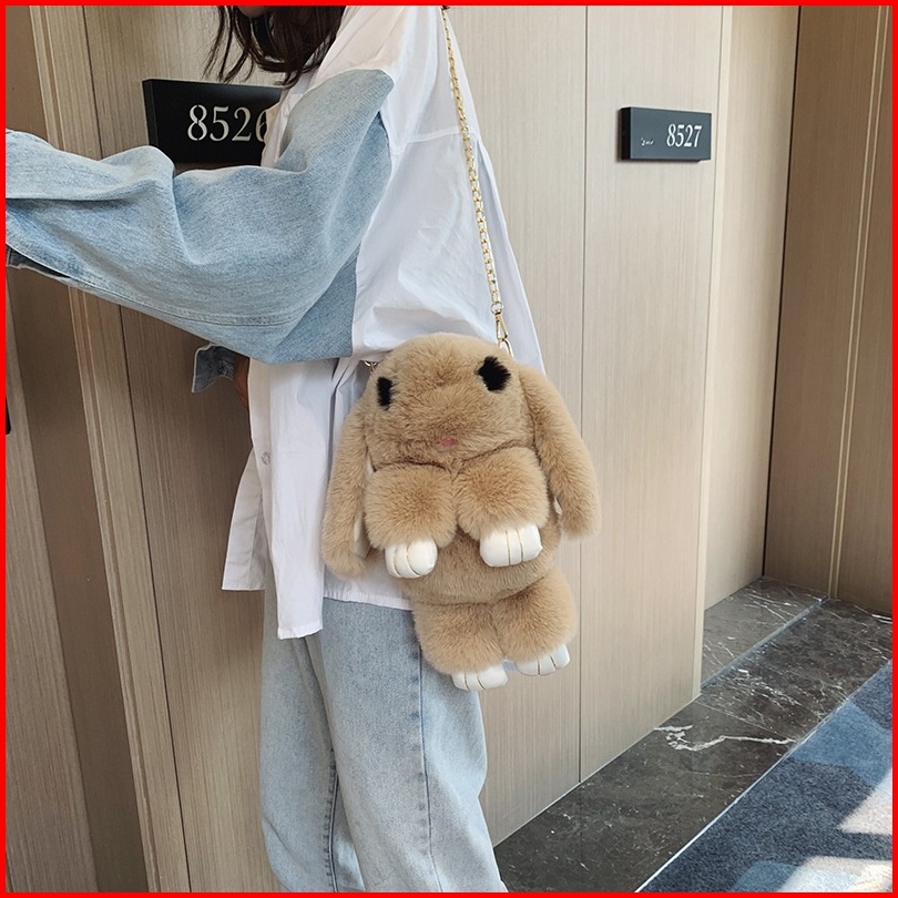 Tas Selempang Kelinci Bulu Rabbit Besar Tas Wanita Kelinci Lucu Bulu Lembut Fashion Korea Kekinian