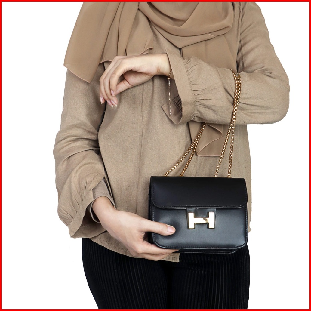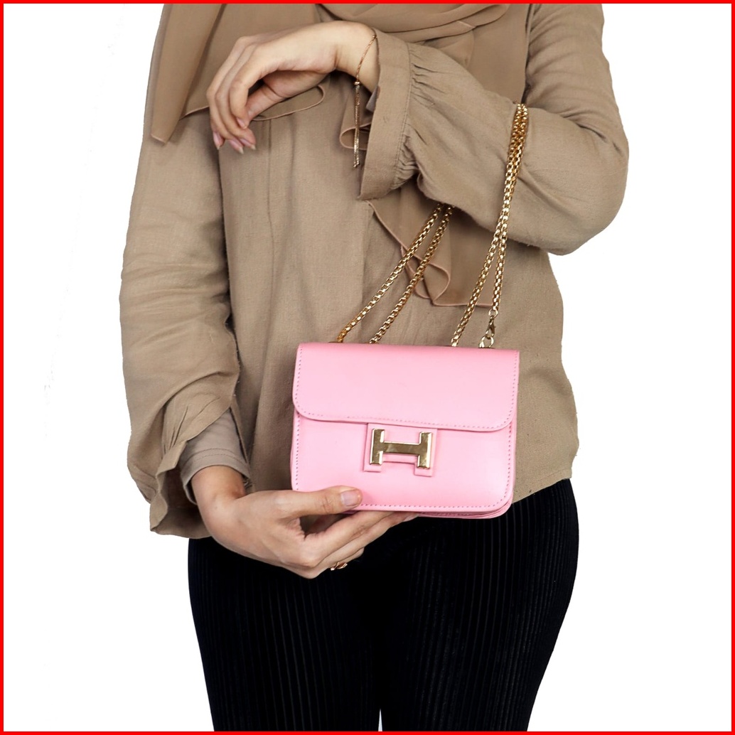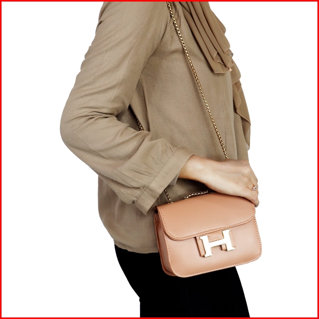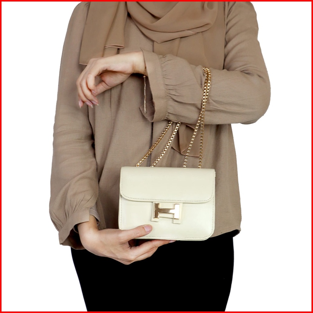 Tas Wanita Selempang Bahu Lokal Slempang Murah Bukan Import Tali Rantai Kulit Premium Happy Sling Bag