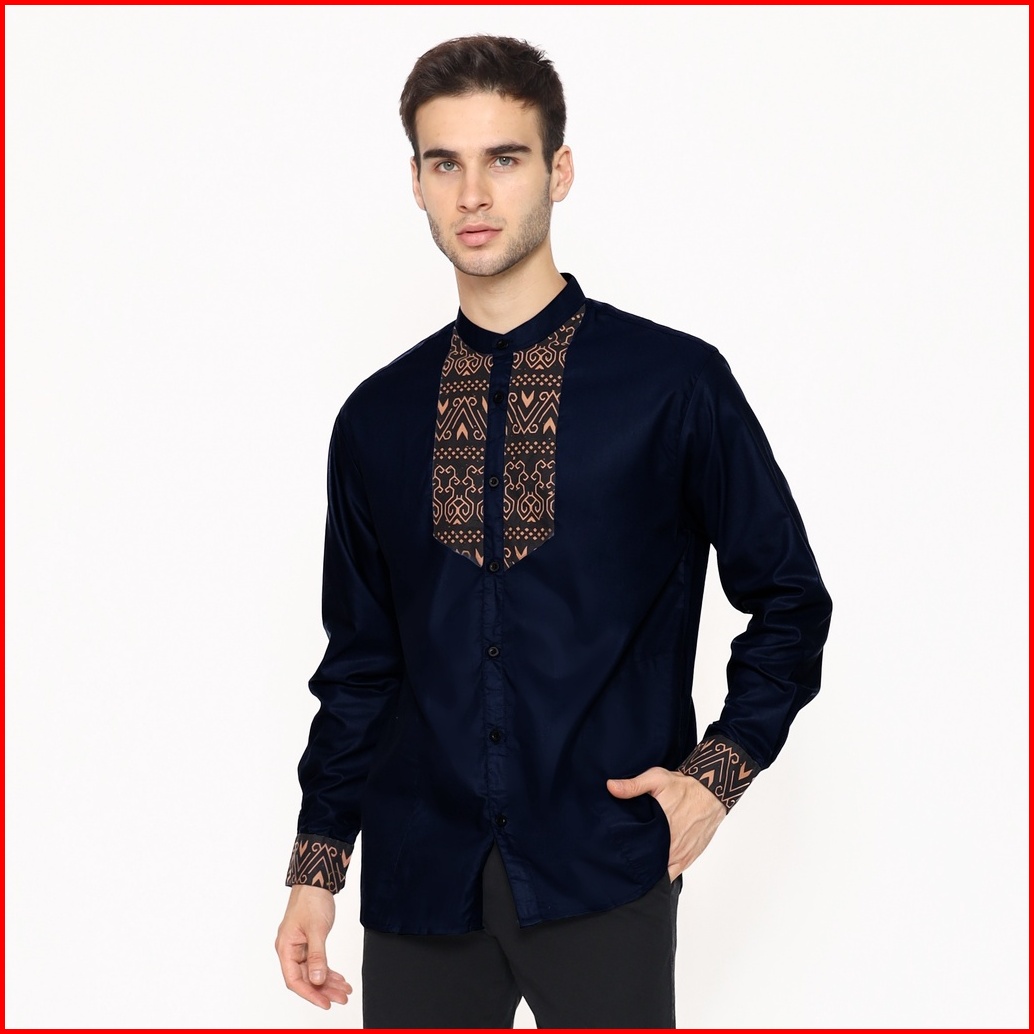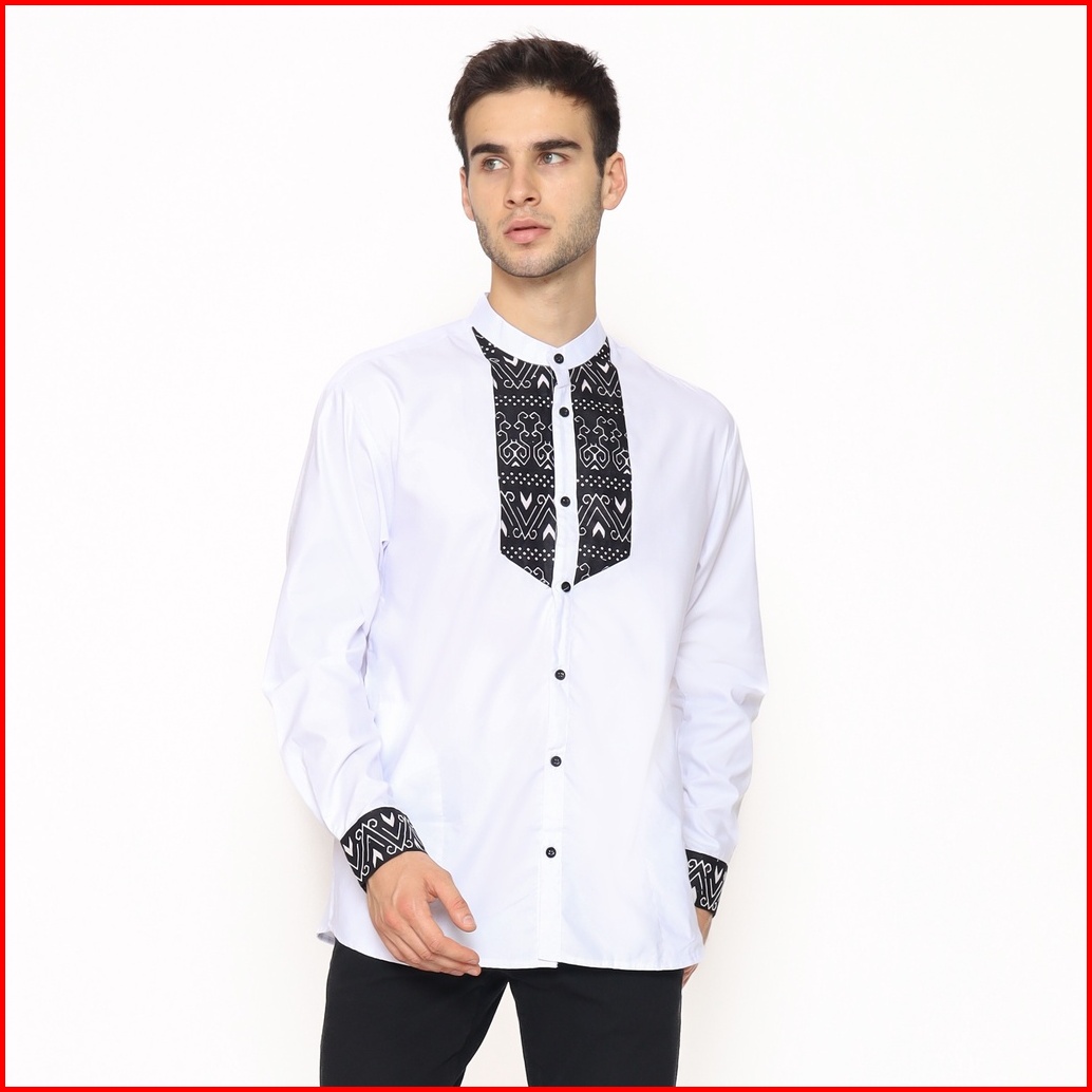 Alawi - Baju Koko Pria Muslim Lengan Panjang Motif Busur Hitam Kombinasi Hadroh Azzahir M L Xl