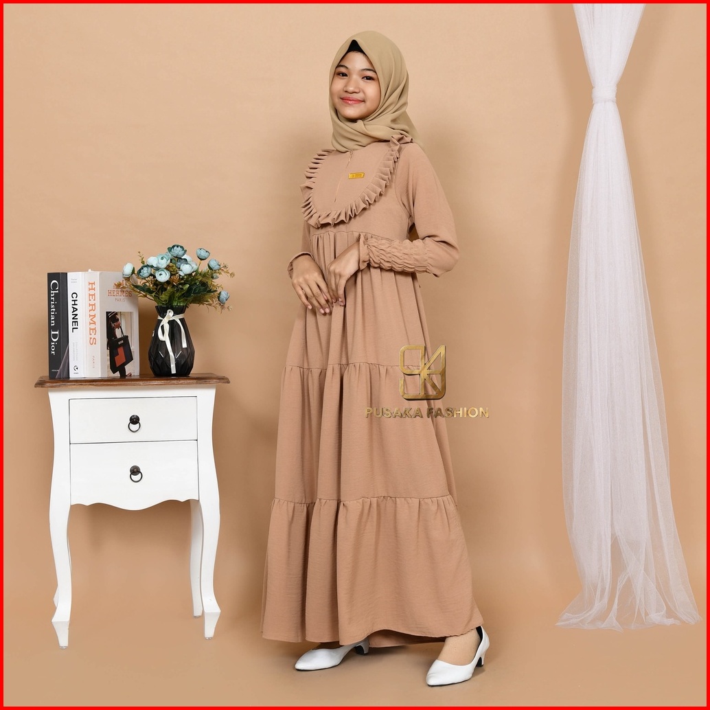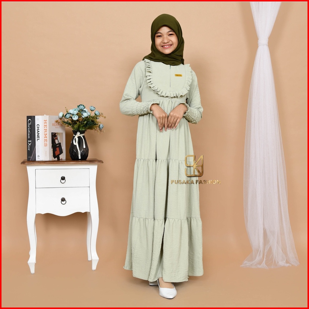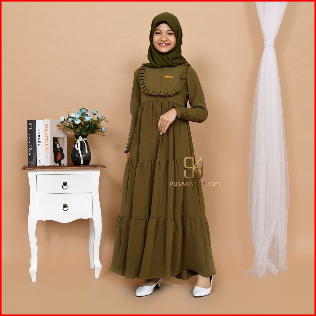 Vin4 Kids Gamis Cringkle Anak Perempuan Remaja Tanggung Fashion Muslim Longdress Serut Susun