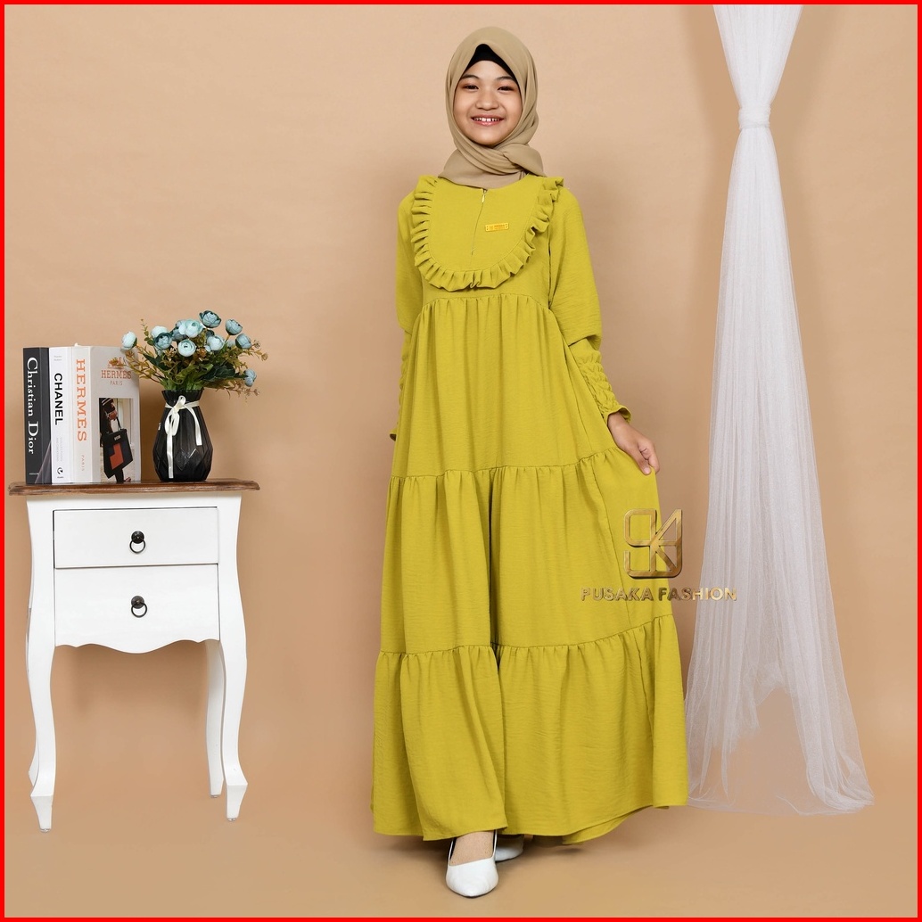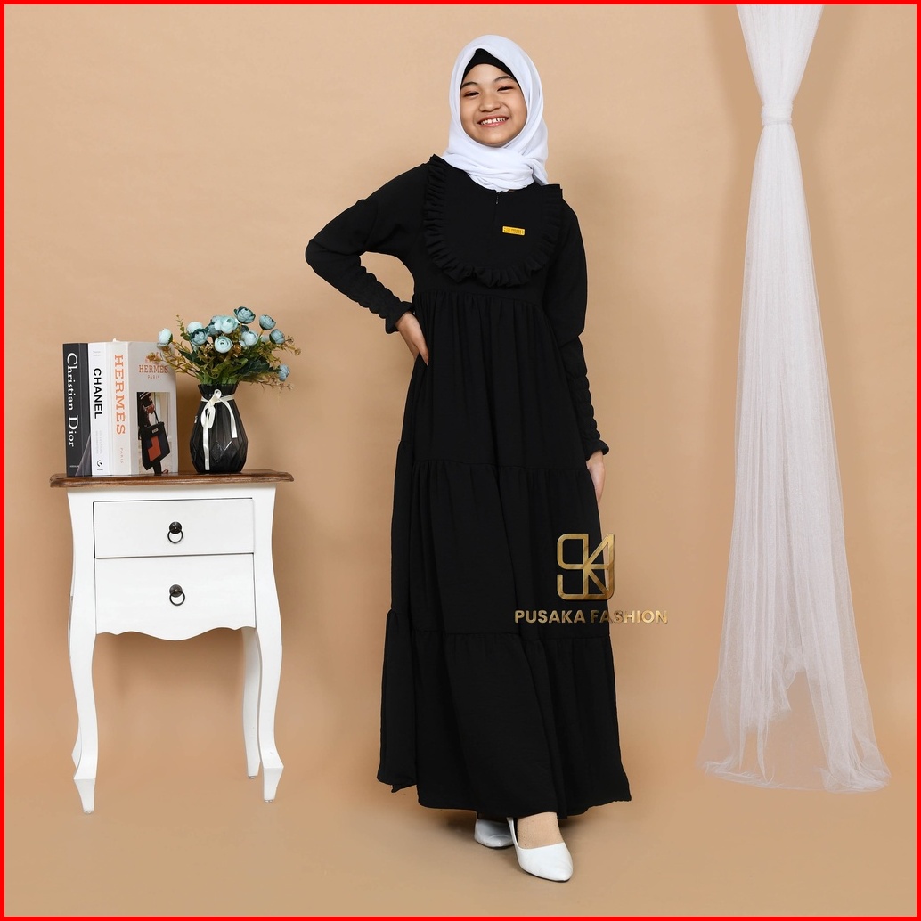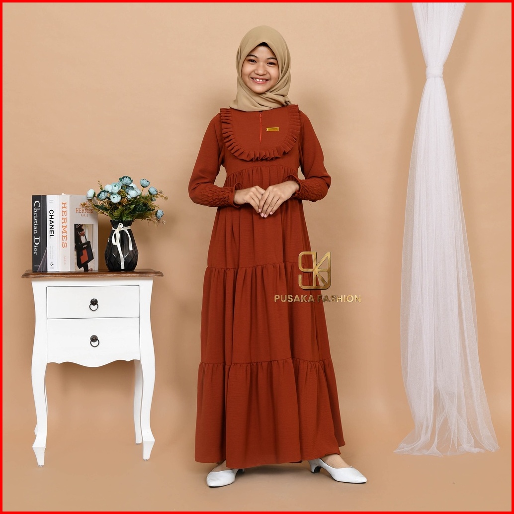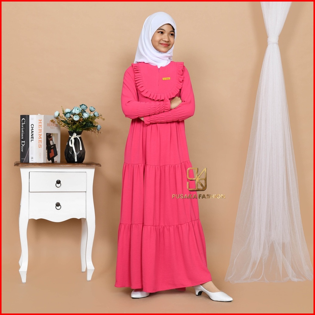 Vin4 Kids Gamis Cringkle Anak Perempuan Remaja Tanggung Fashion Muslim Longdress Serut Susun