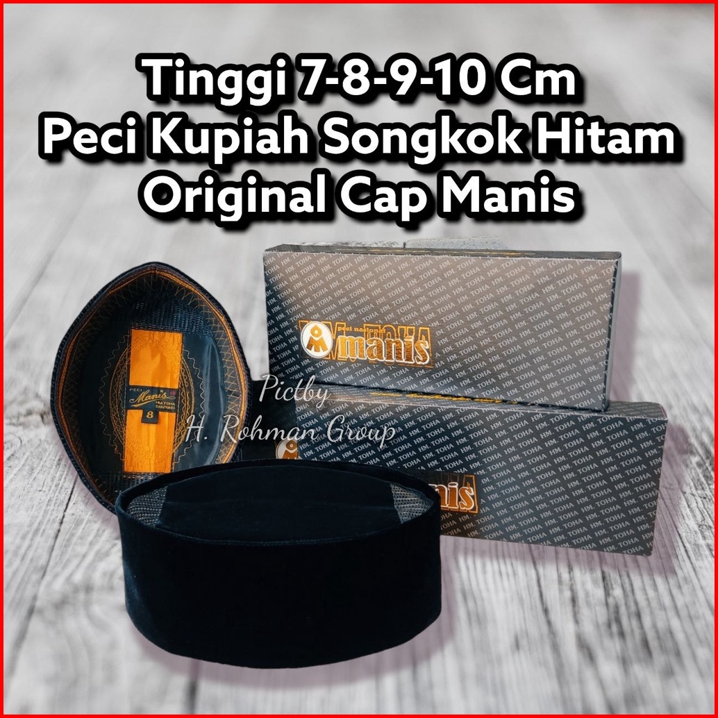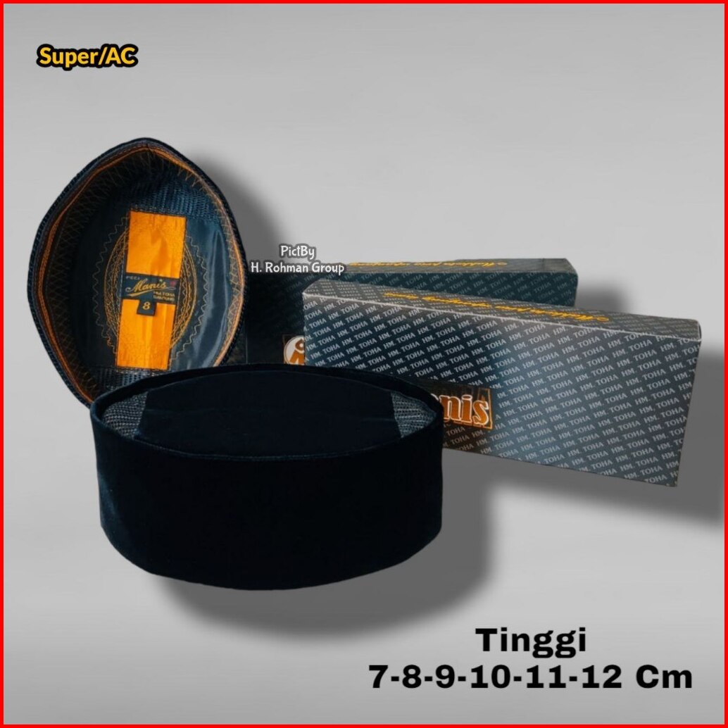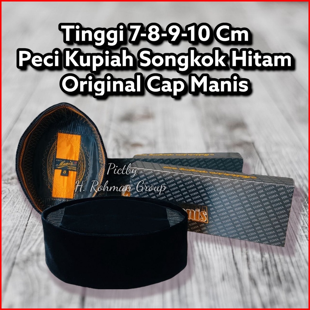 Ori Peci Songkok Hitam Polos Ac Cap Manis Tinggi 7cm 8cm 9cm 10cm Set Perlengkapan Sholat