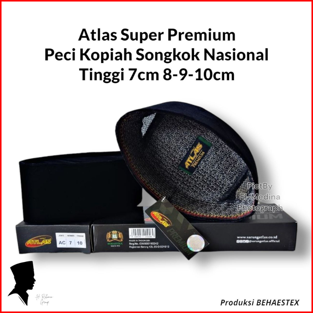 Peci Kopiah Hitam Atlas Premium Ac Tinggi 7 8 9 10 Cm Songkok Nasional Atlas Bludru Super Halus