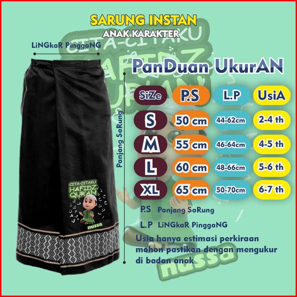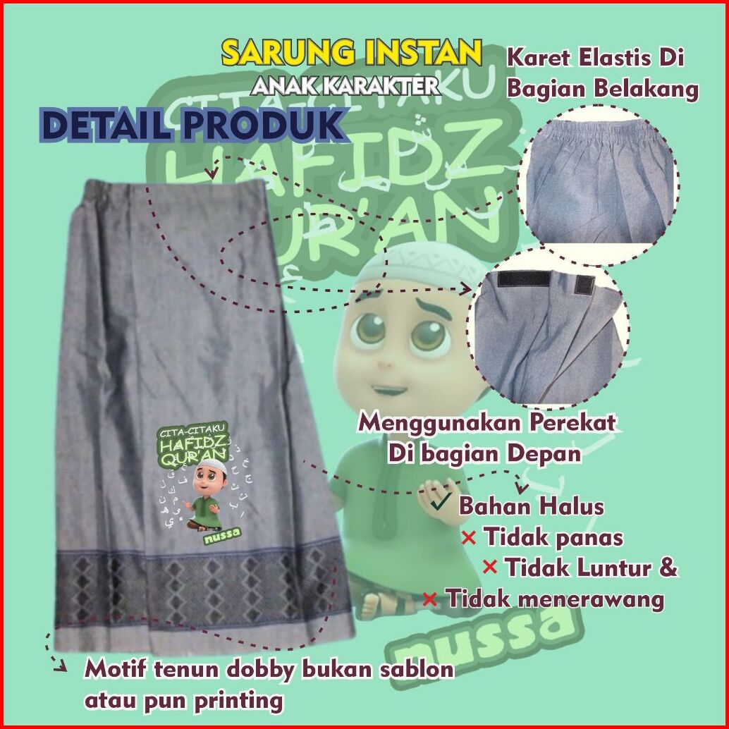 Sarung Anak Laki Laki Karakter Hafidz Qur An Motif Polos Dobby Umur 2 Sampai 7 Tahun