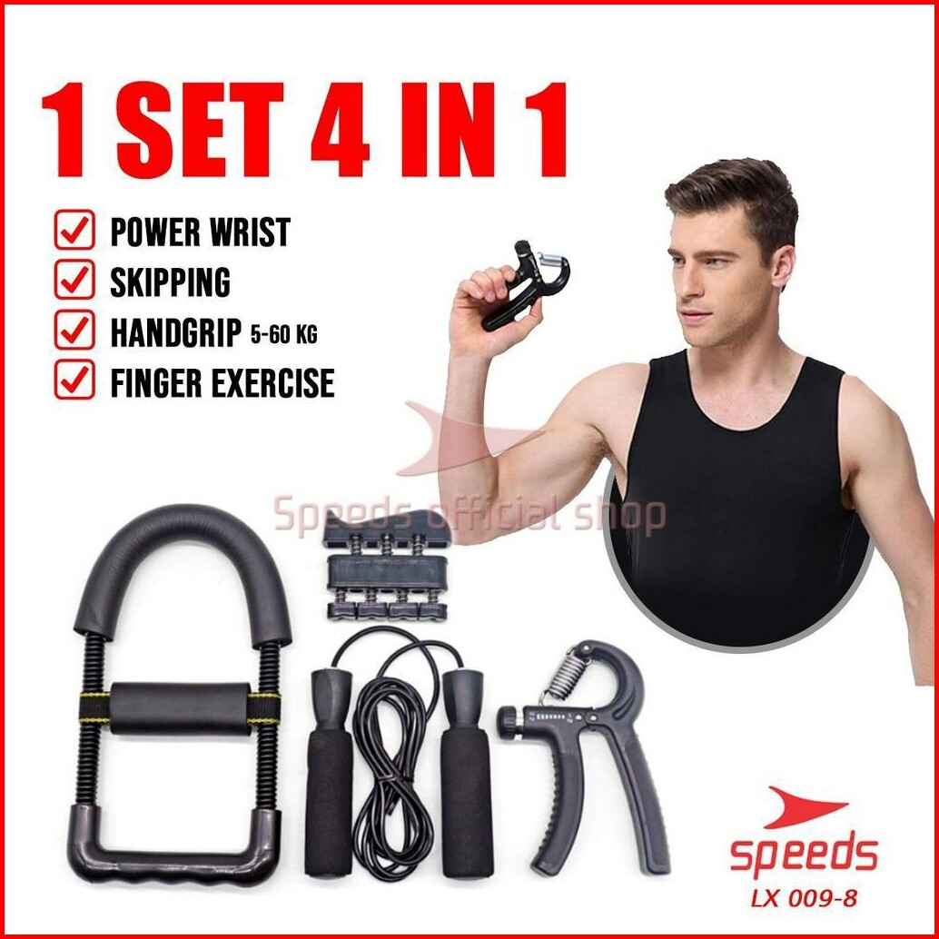 Speeds Alat Fitness Handgrip Set 4in1 Exercise Power Wrist Skipping Olahraga Alat Fitness Gym Satu Set 009-8