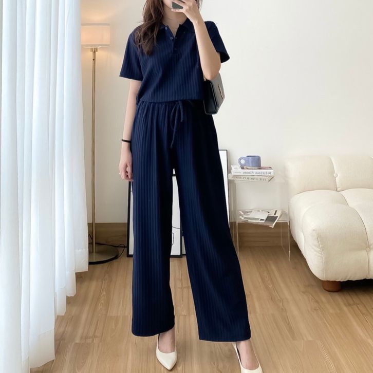 Oneset Knit Polo Wanita Celana Panjang Set Rib Premium Setelan Cewe Crop Top Terbaru Kekinian