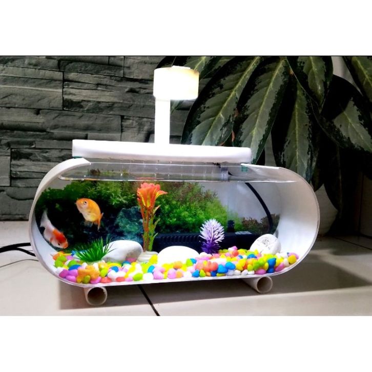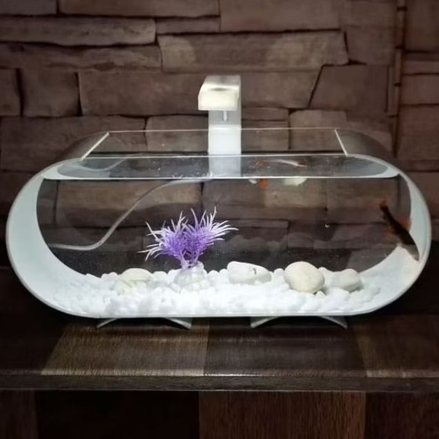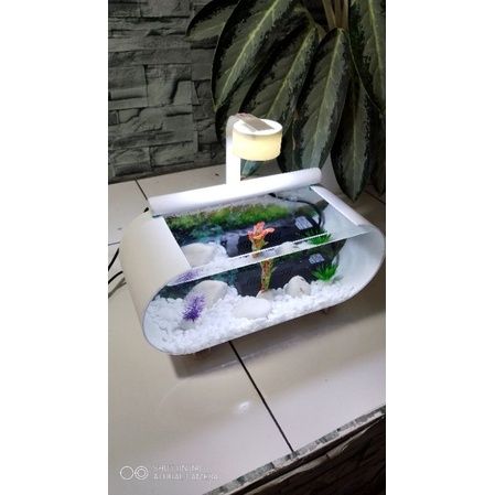 Aquarium Full Set Aquarium Mini Akrilik Ikan Hias Cupang Guppy Neon Glowfish Koki Plus Pompa Filter Lampu Led Akuarium