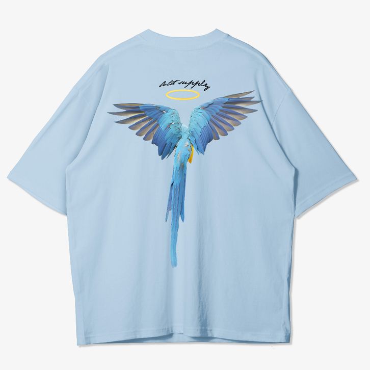 Kaos Oversized Tshirt Bristle Baby Blue & White l Kaos Oversize Pria dan Wanita OVZ134