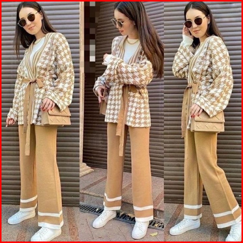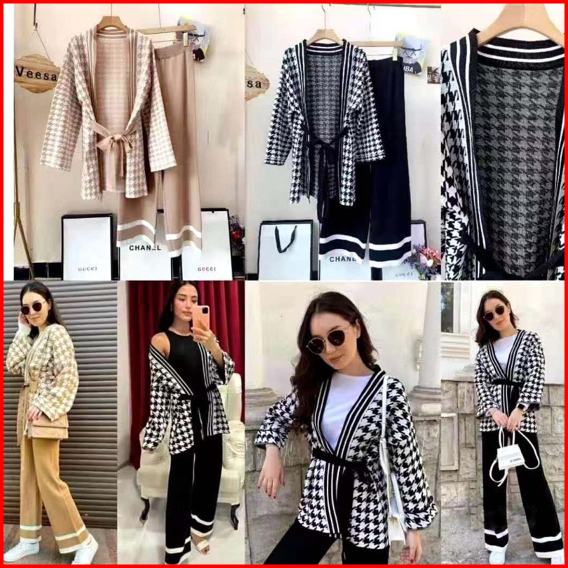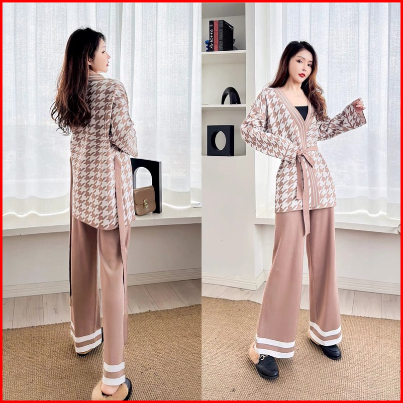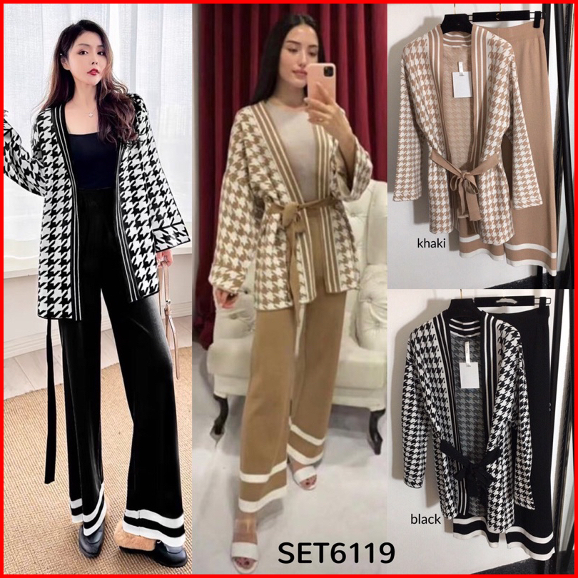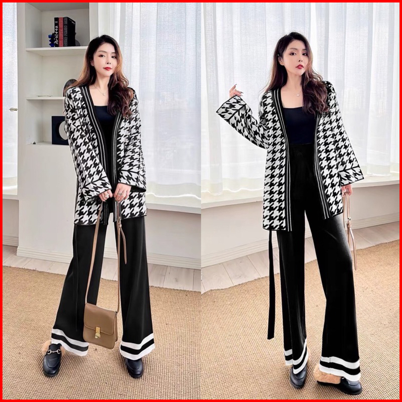 Fg Fancy Houndstooth Set Long Outer Pants Set6119