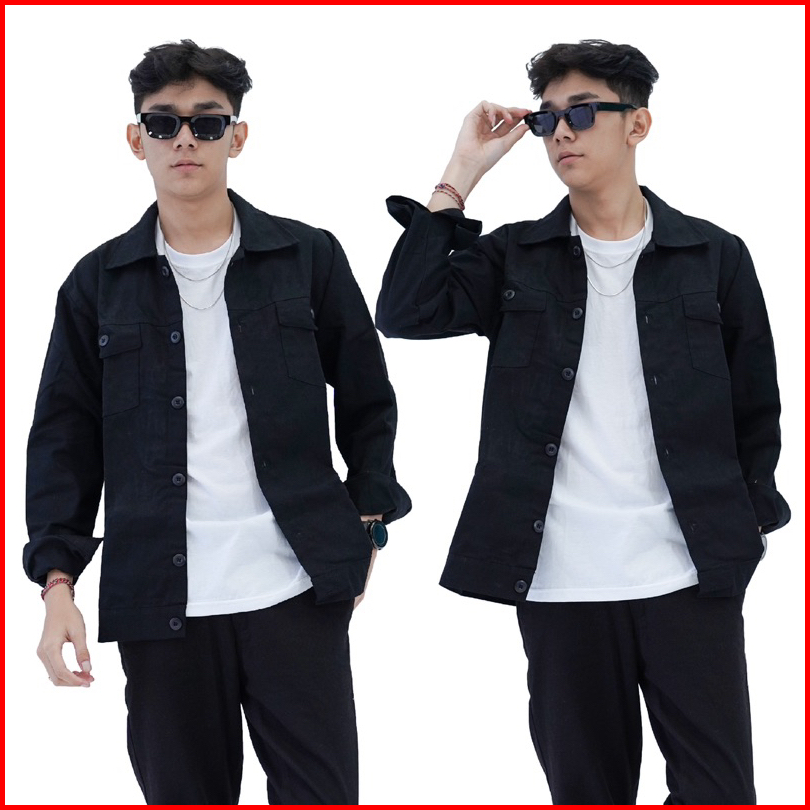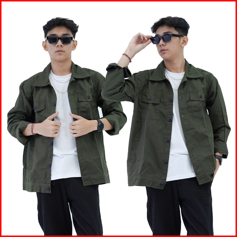 N01103 Jaket Kanvas Motif Distro Twill Tebal