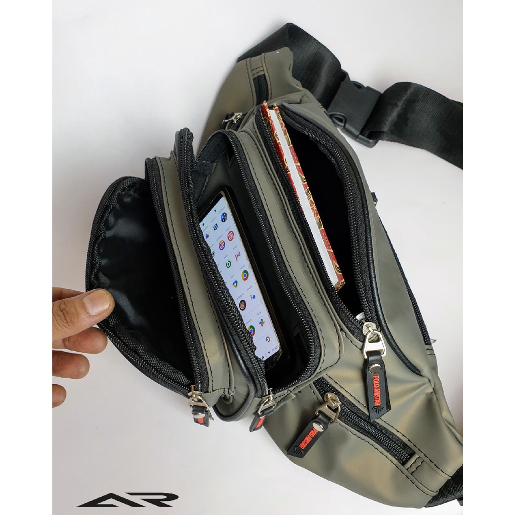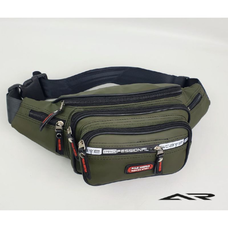 Tas Selempang Pria Anti Air Waistbag Waterproof Original Polo Amstar 7 ruang