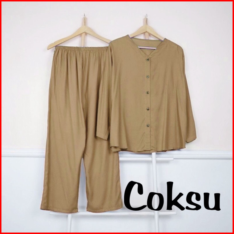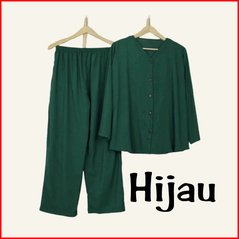 V Neck Cozy Oneset Daily Setelan Atasan Dan Bawahan Panjang Ld 110 120 Dan 130 Katun Premium Adem