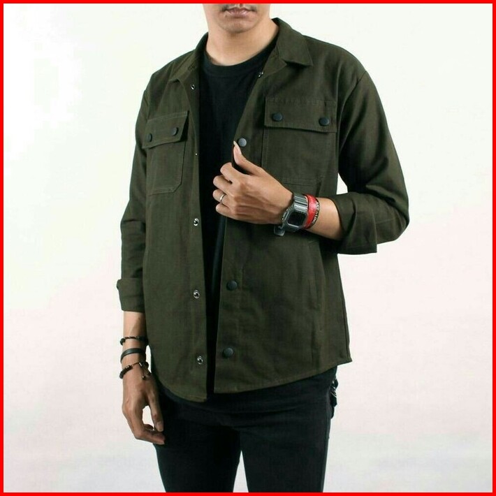 Jaket Semi Parka Casual Trucker Bahan Canvas Pria