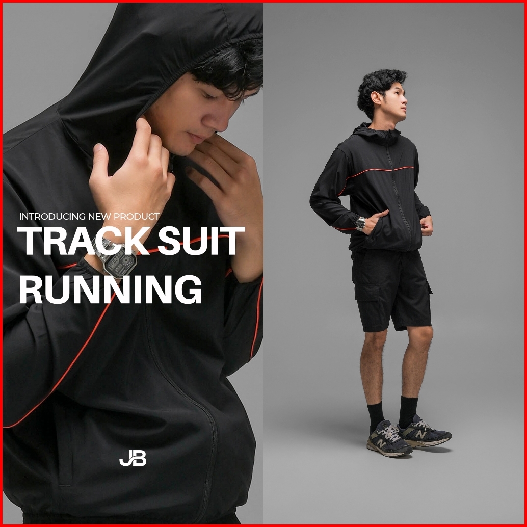 Jb - Jacket Track Suit Red Stripe - Jaket Running Pria