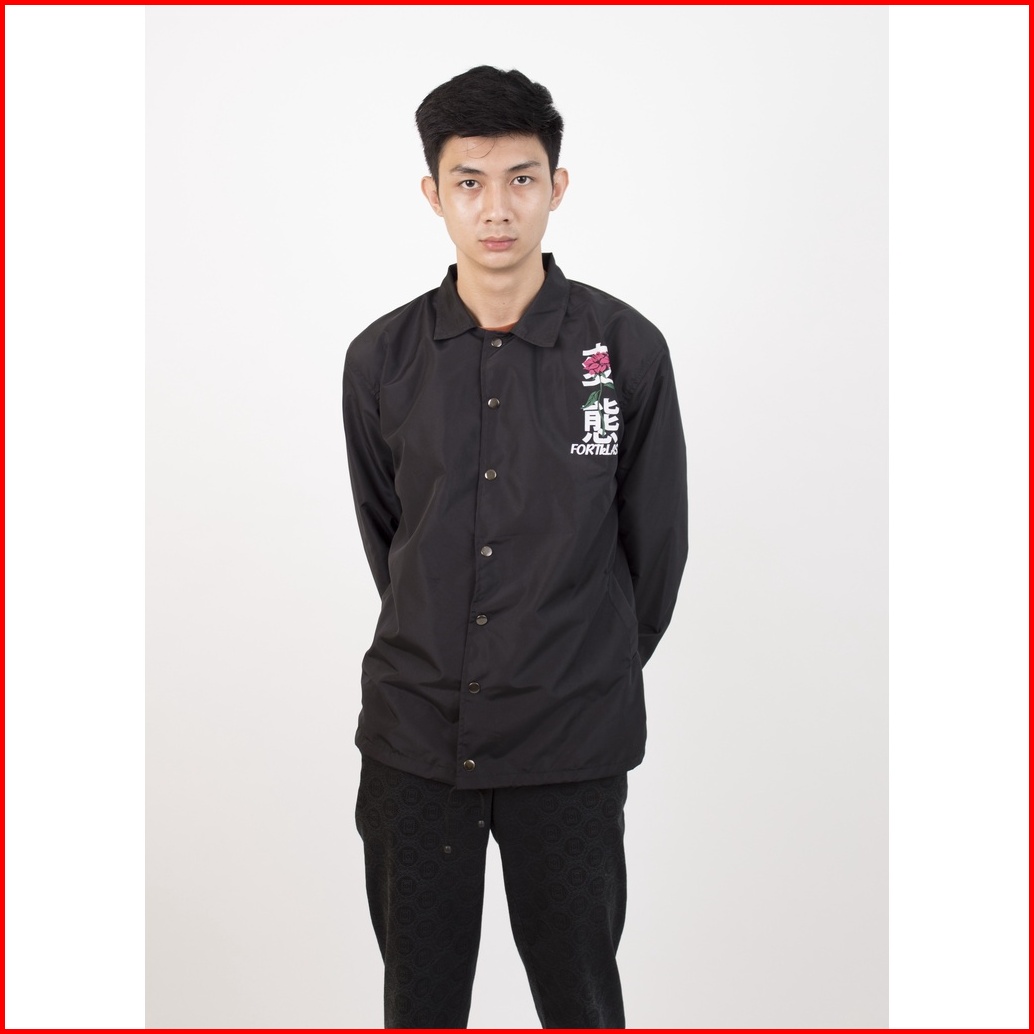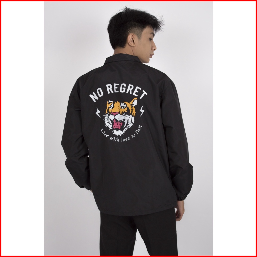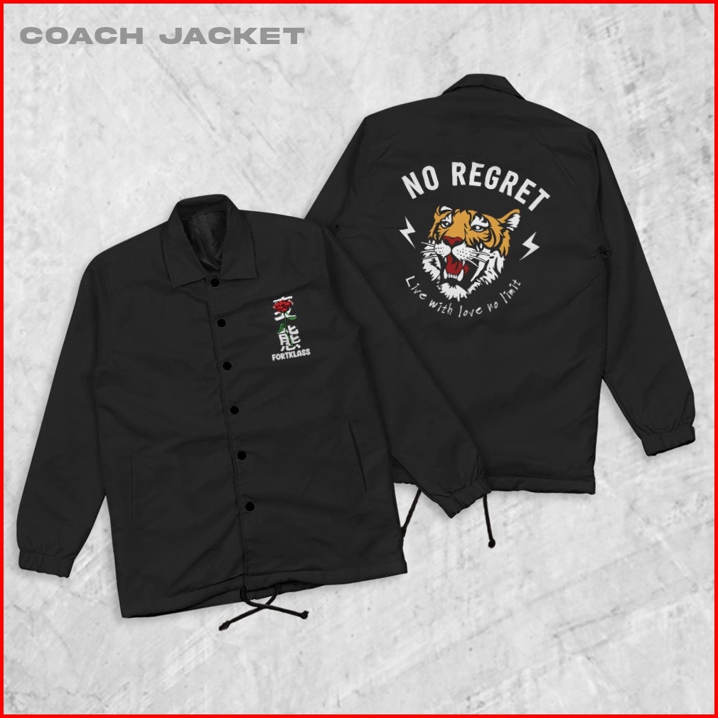 Fortklass Regret Hitam Jaket Coach Pria Jaket Parasut Unisex