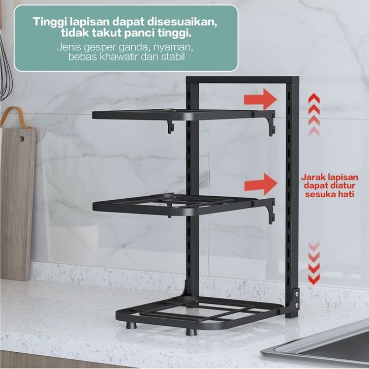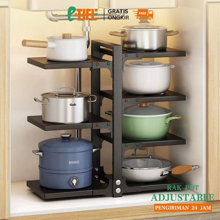 [Mall] E-TIFE RAK POT RAK PANCI SUSUN RAK BAWAH WASTAFEL RAK DAPUR STAINLESS STEEL (3/4/5 Tingkat) RAK PANCI SERBAGUNA