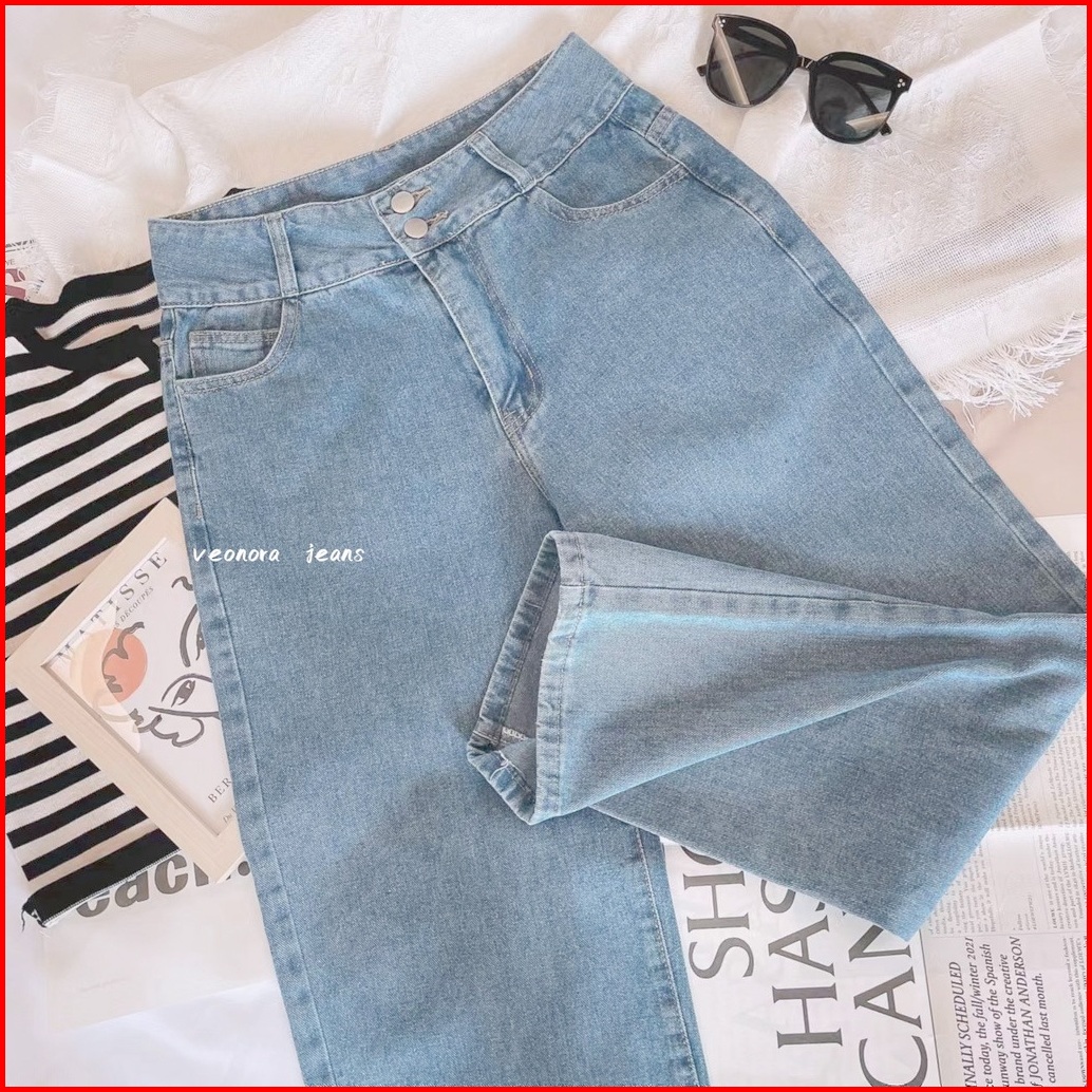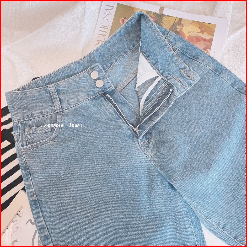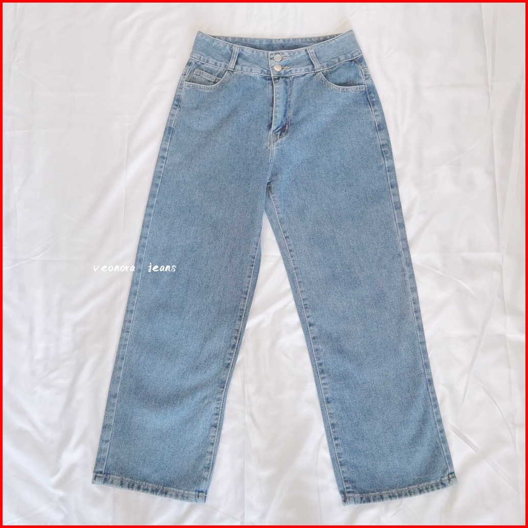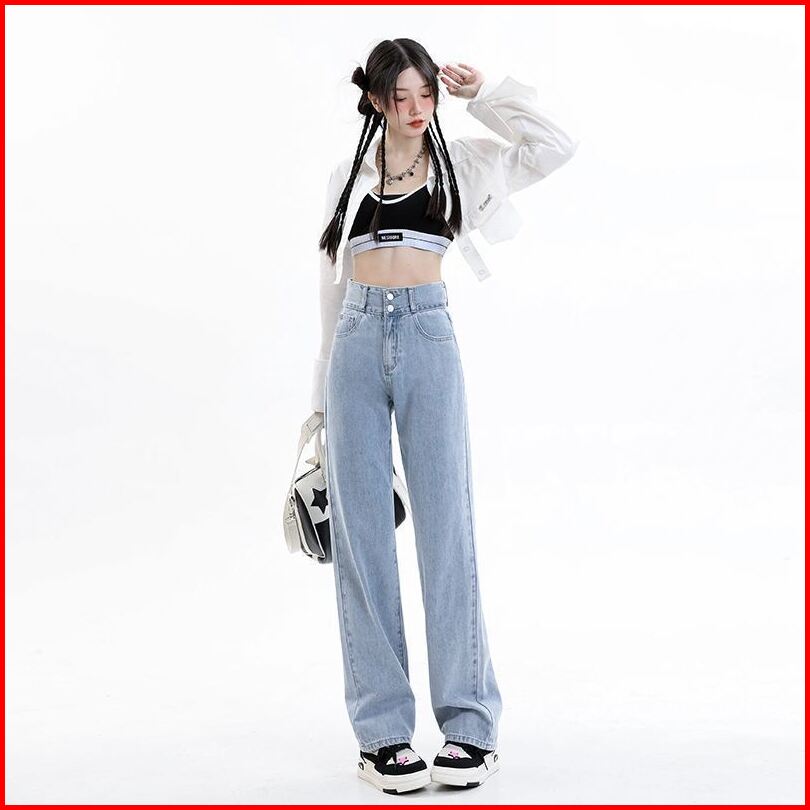 Korean Style Bagy High Waist Straight Loose Cutbray Boyfriend Celana Panjang Jeans Wanita Biru
