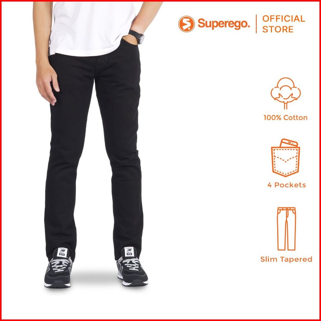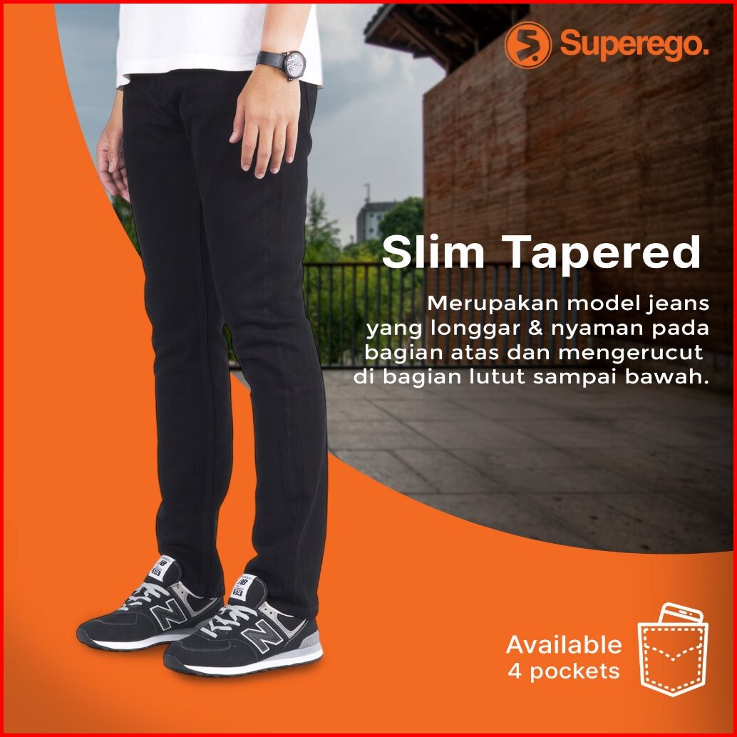 Superego Celana Jeans Pria Size 28-38 Slim Tapered Long Pants Reguler Denim Black Obsidian Sbt01a