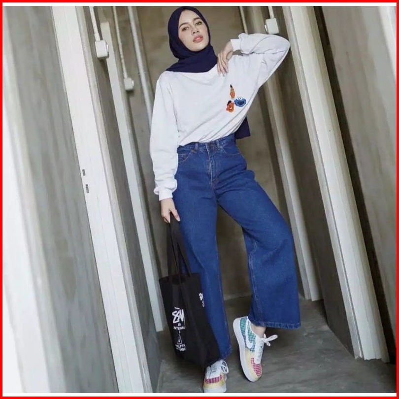 Murah Highwaist Kulot Jeans Wanita Kekinian Premium Qualiti Celana Kulot Lipat Celana Panjang Jeans Wanita Kulot Lipat