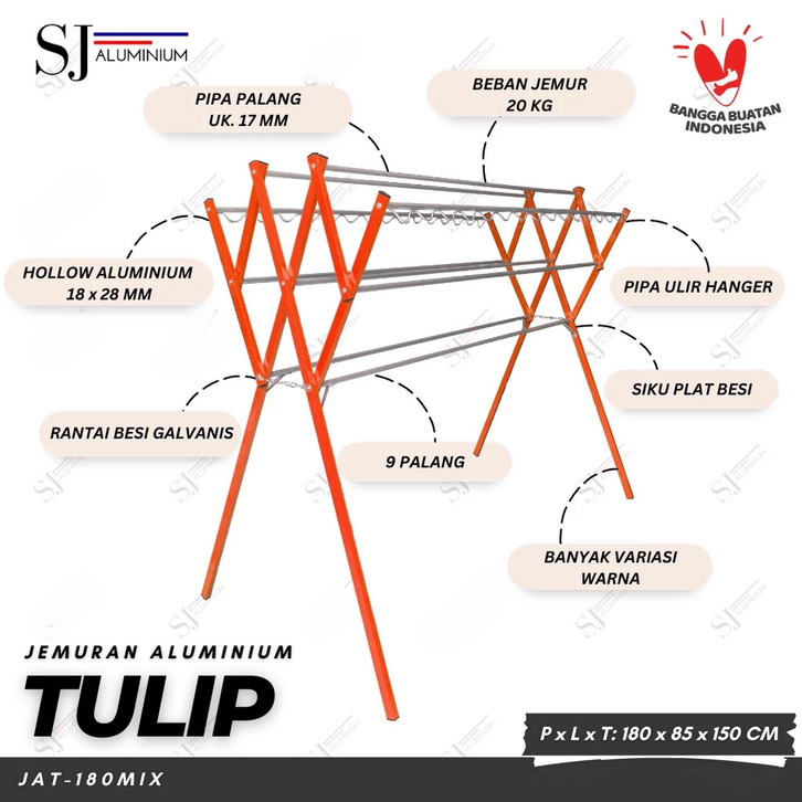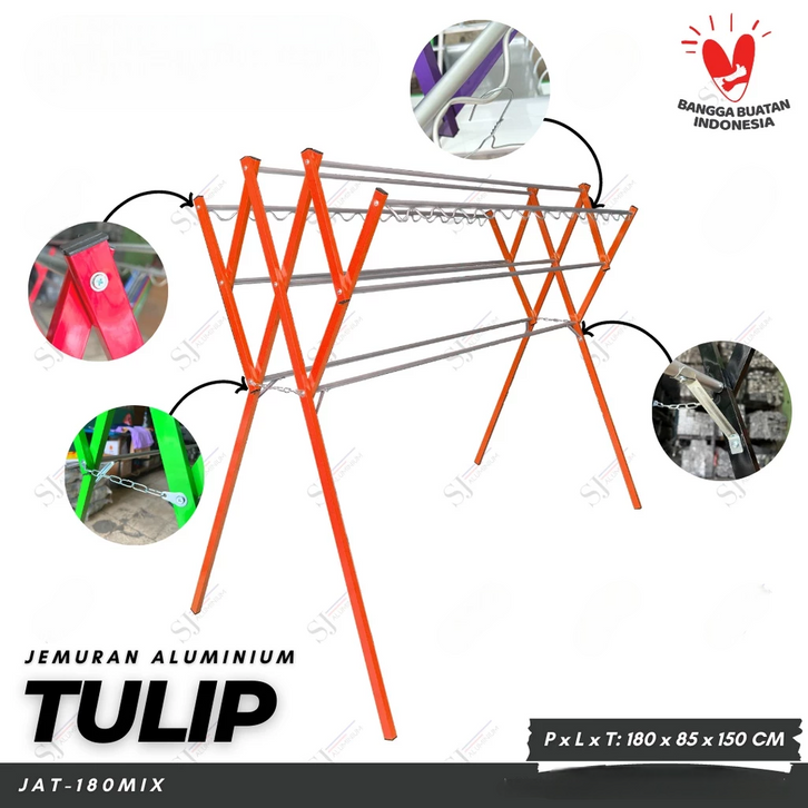 Jemuran Baju Stainless Jumbo Gantungan Handuk Baju Lipat Alumunium 180cm