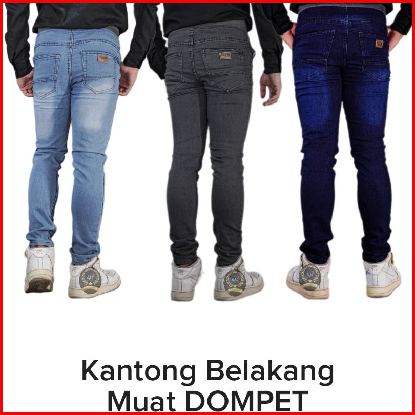 Celana Panjang Cowok Slim Fit Jeans Pinggang Karet Feil