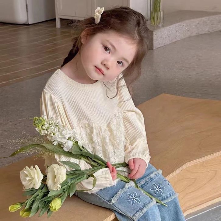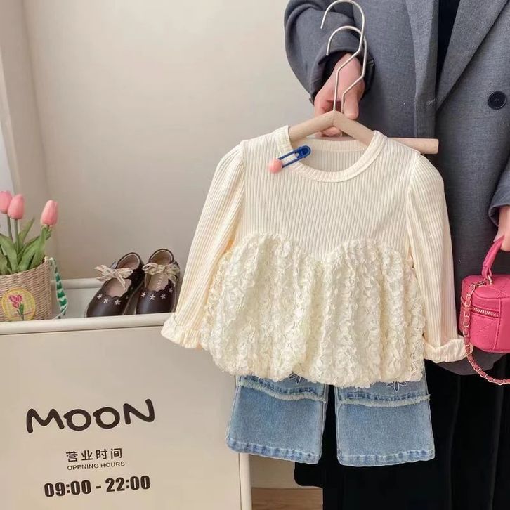 Setelan Anak Perempuan Atasan Pricess Mains+Celana Jeans Panjang Baju Anak Perempuan Pakaian Anak Korean Style