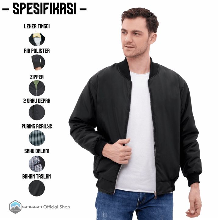SAGGA - Jaket Bomber Polos Perasut Pria Premium Jaket Distro Parasut Tebal free Ongkir Jabodetabek