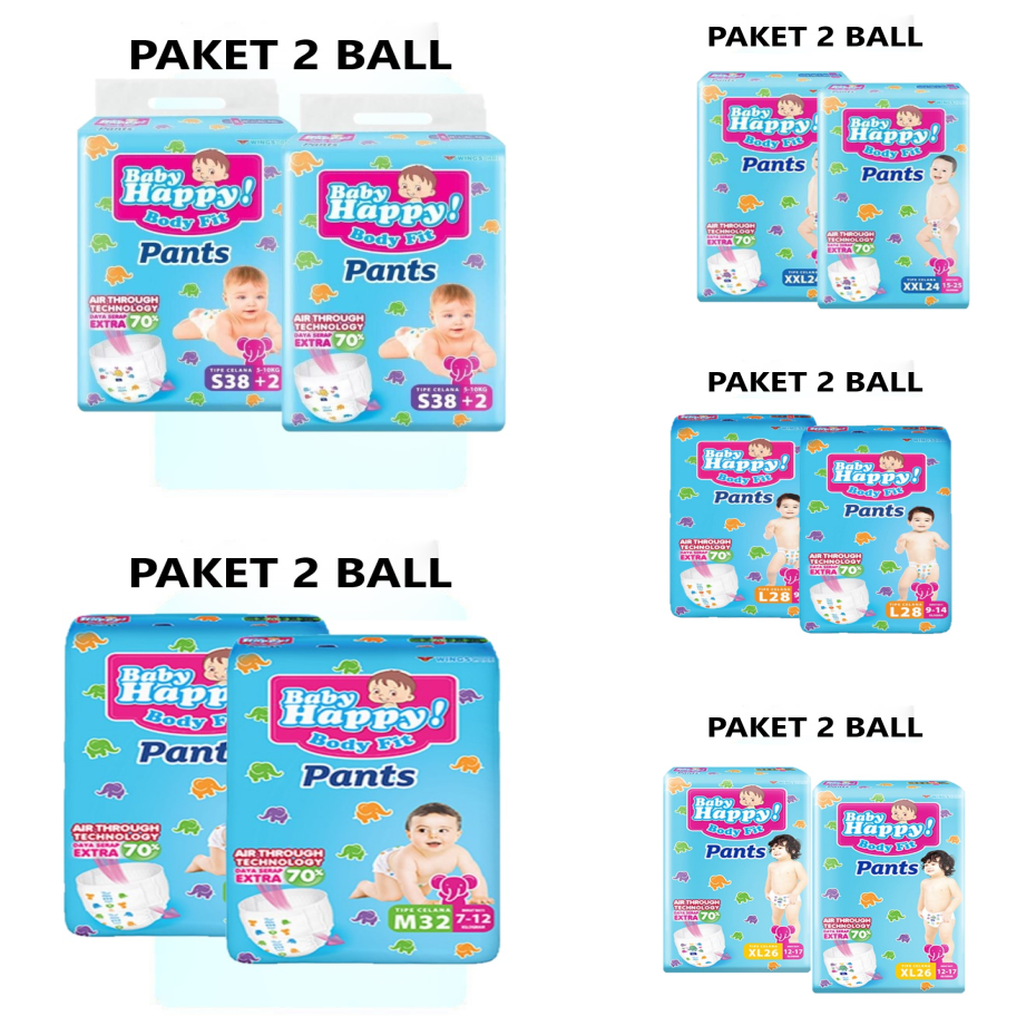Paket 2 Ball BABY HAPPY PANTS S38+2 M32 L28 XL26 XXL24 2 BALL POPOK CELANA BAYI