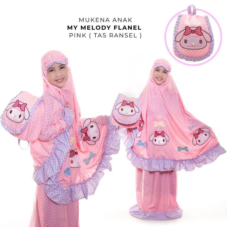 Mukena anak /Indonesia - Mukena Anak My Melodi Flanel Pink Tas Ransel/Mukena anak kekinian /Mukena anak lebaran