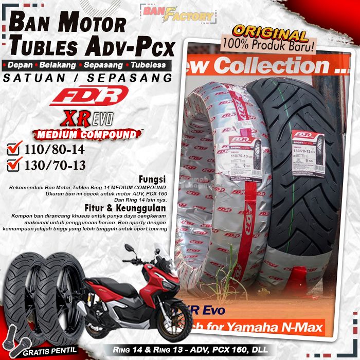 Sepasang Ban Motor Tubles ADV PCX 160 FDR SPORT XR EVO Ring 13 Ban Motor Depan Belakang ADV PCX 160 Ring 14 Tubeless