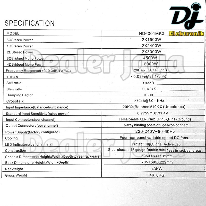 POWER AMPLIFIER RDW ND 6001 MK2 / ND6001 MK2 / ND6001MK2 CLASS GB - 2 CHANNEL