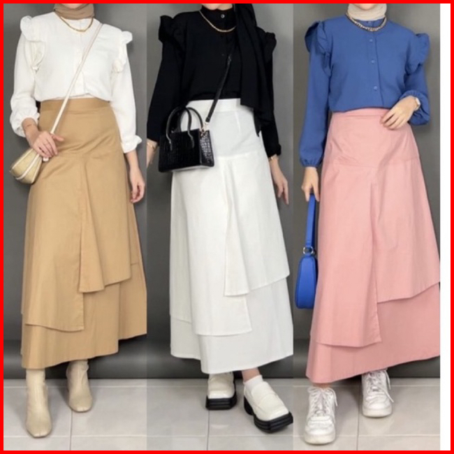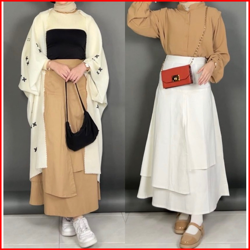 Poplin Skirt Rok Layer Rok Korea Rok Susun Rok Linen