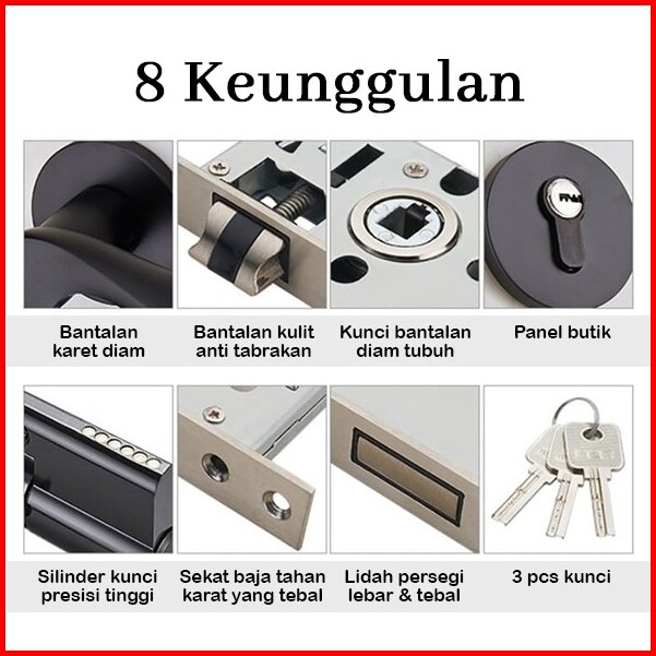 Gagang Pintu Gaya Eropa Full Handle Set Silver Premium Door Handle Kunci Pintu