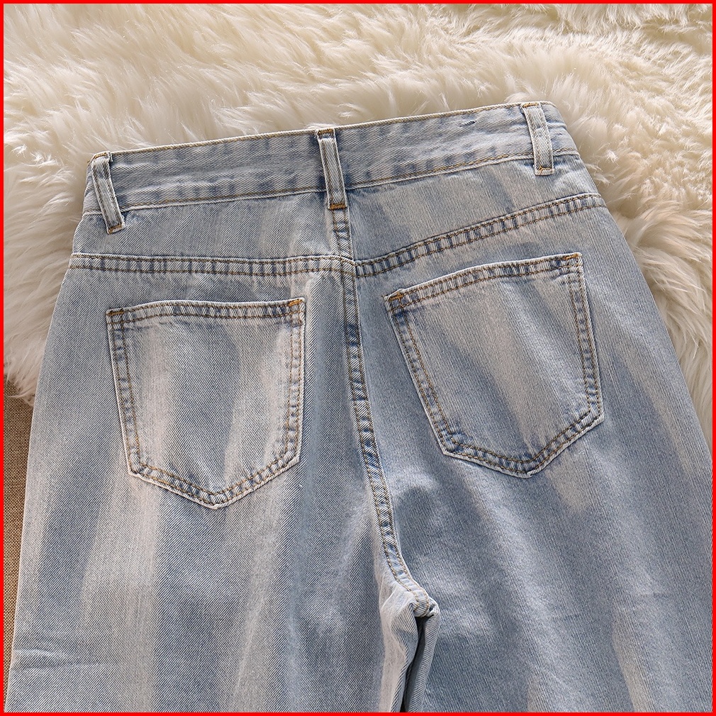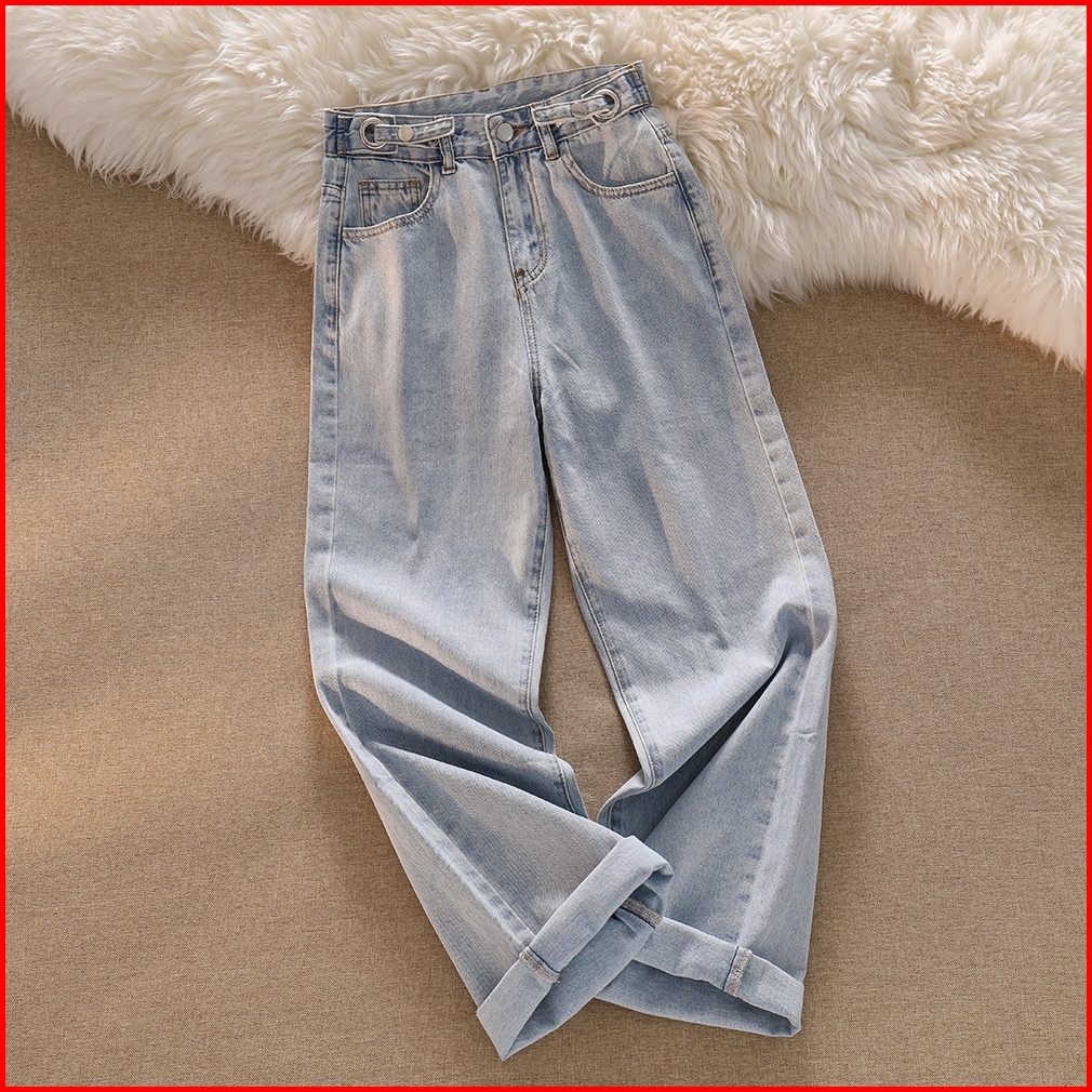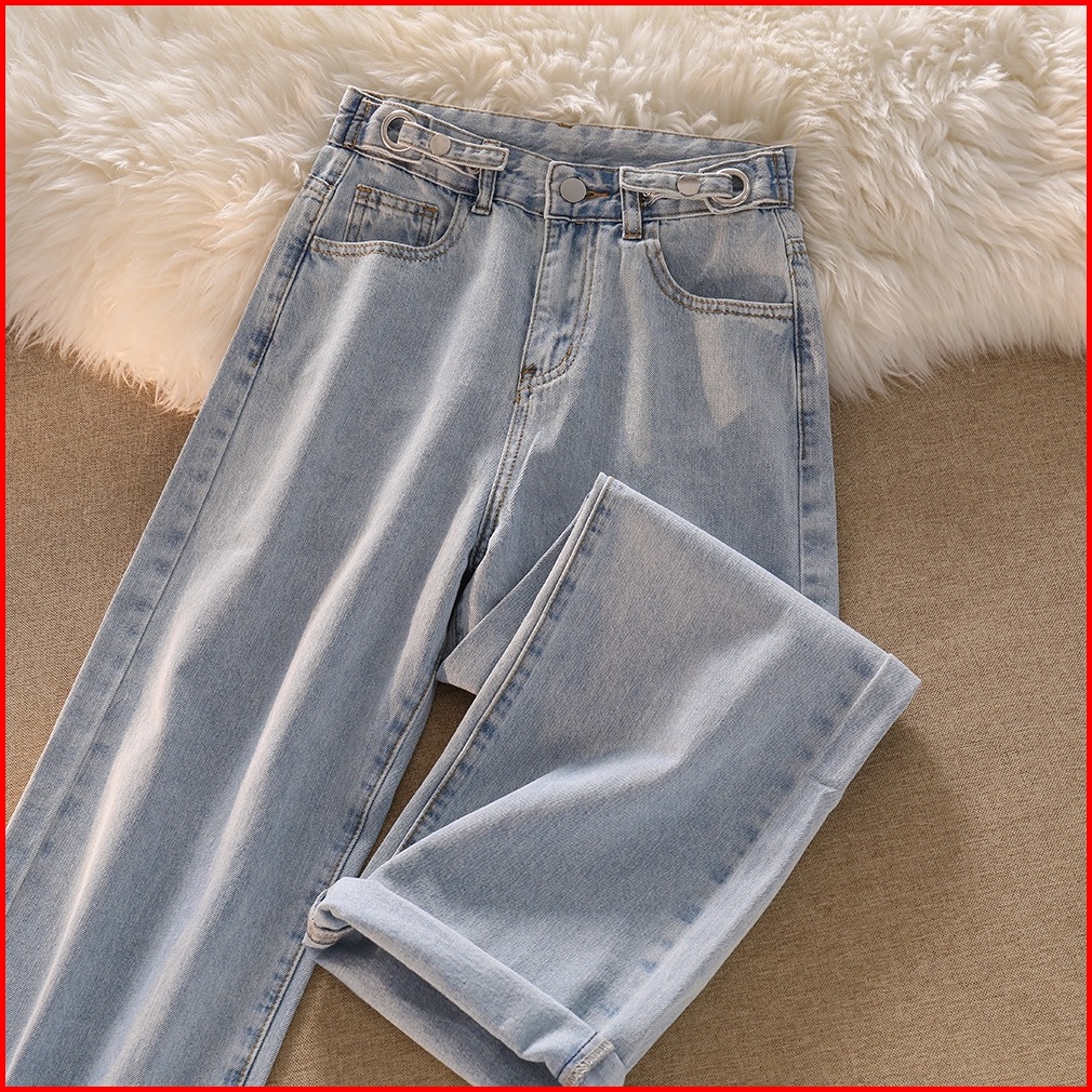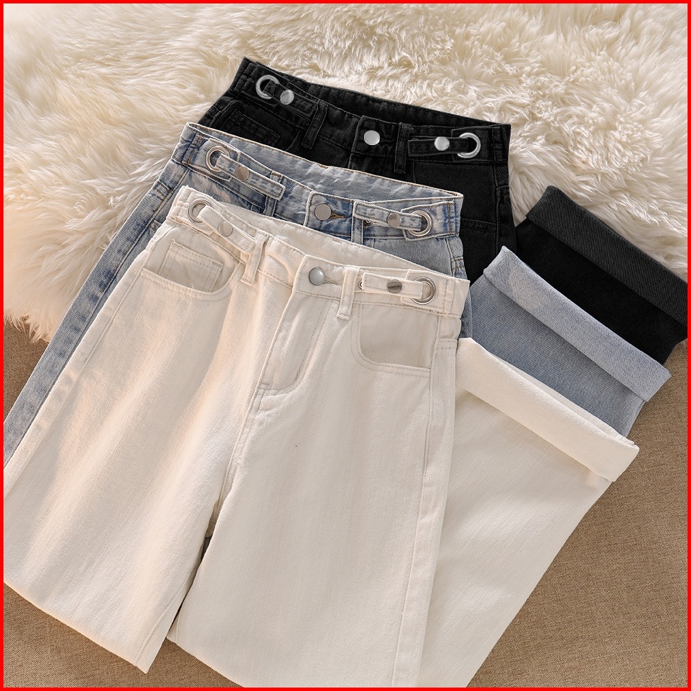 Biru Muda Krem Hitam Kekinian Celana Wanita Jeans Panjang High Waist Korean Style Gambar Fisik