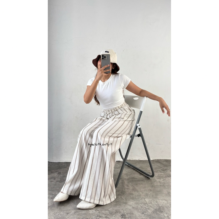 Celana Kulot Wanita Salur Celana Panjang Wanita Baggy Pants Linen Premium