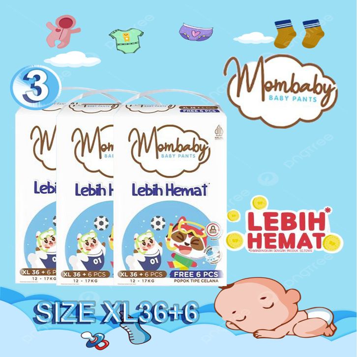 Paket 3 Ball Mombaby Popok celana Big pack XL36+6 Celana