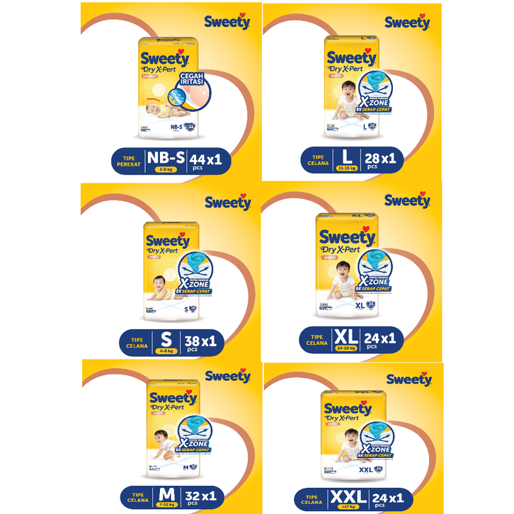 Popok Sweety Bronze Dry X-Pert Tipe Celana dan Perekat NBS44/S36/M32/L28/XL24/XXL24