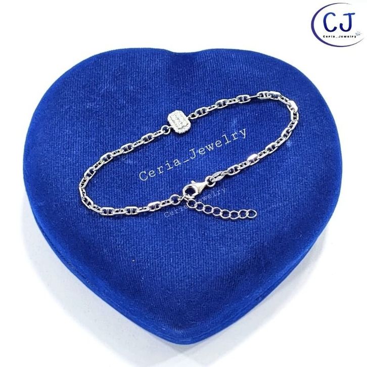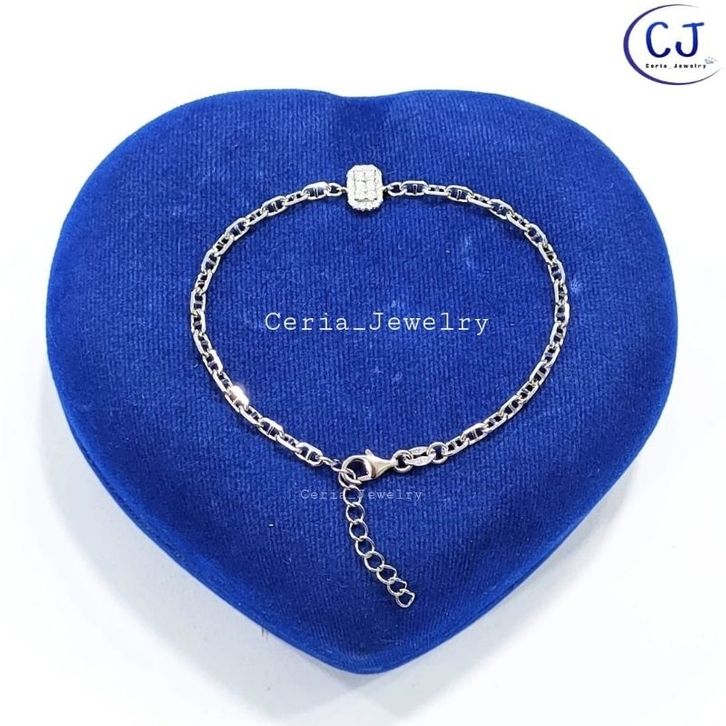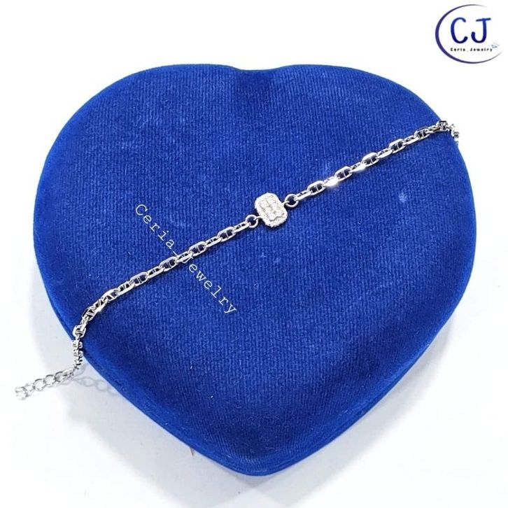 Gelangg Perak Asli Silver 925 LapisEmas Putih Asli Rantai Permata - Gelangg AntiKarat - Perhiasan Wanita