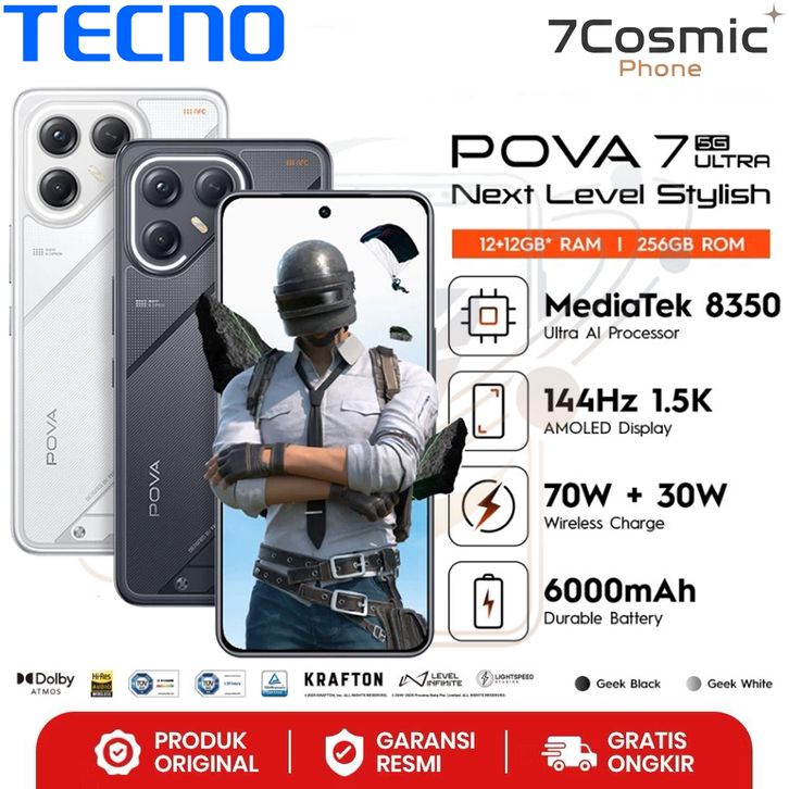 TECNO POVA 7 Ultra 5G 12+12GB*/256GB & POVA 7 5G 8/256GB 6000mAh Mediatek D8350 Ultimate 144Hz 1.5K AMOLED Display 108MP