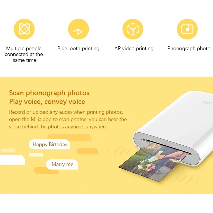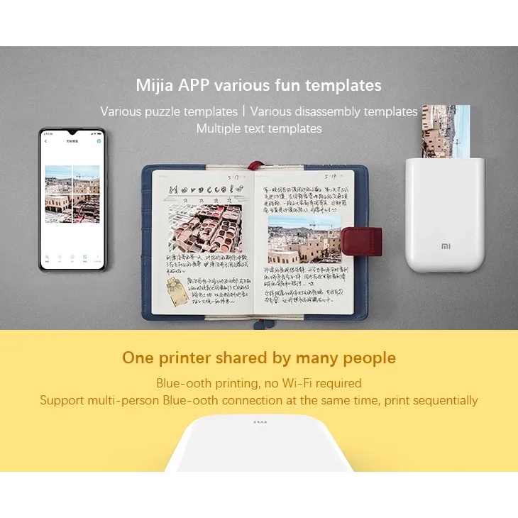 XIAOMI MIJIA PORTABLE PHOTO AR PRINTER 300DPI POCKET MINI BLUETOOTH POCKET PRINTER WITH PRINT PAPER