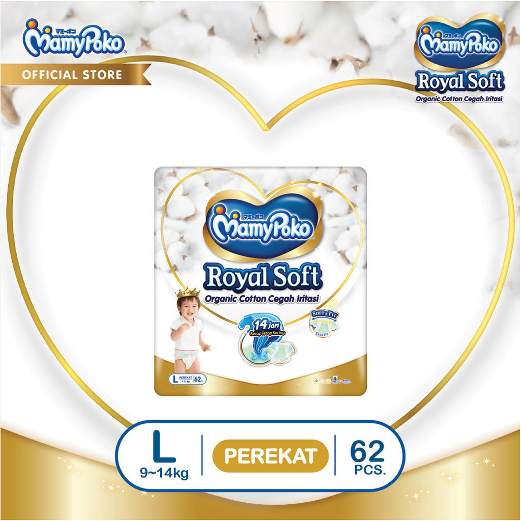MAMYPOKO ROYAL SOFT ORGANIC COTTON L 62 1 2 3 4 BALL PEMPERS BAYI PEREKAT L62 POPOK BABY MAMY POKO TAPE MURAH