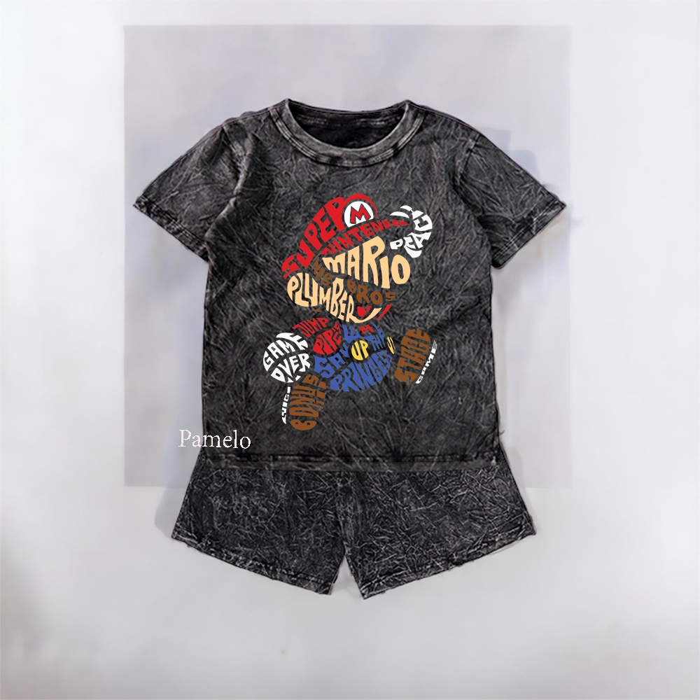 STELAN WASH ANAK UNISEX SUPER MARIO/LUIGI ONE SET ANAK STONE WASH SET DISTRO BASIC ANAK PRIA DAN WANITA