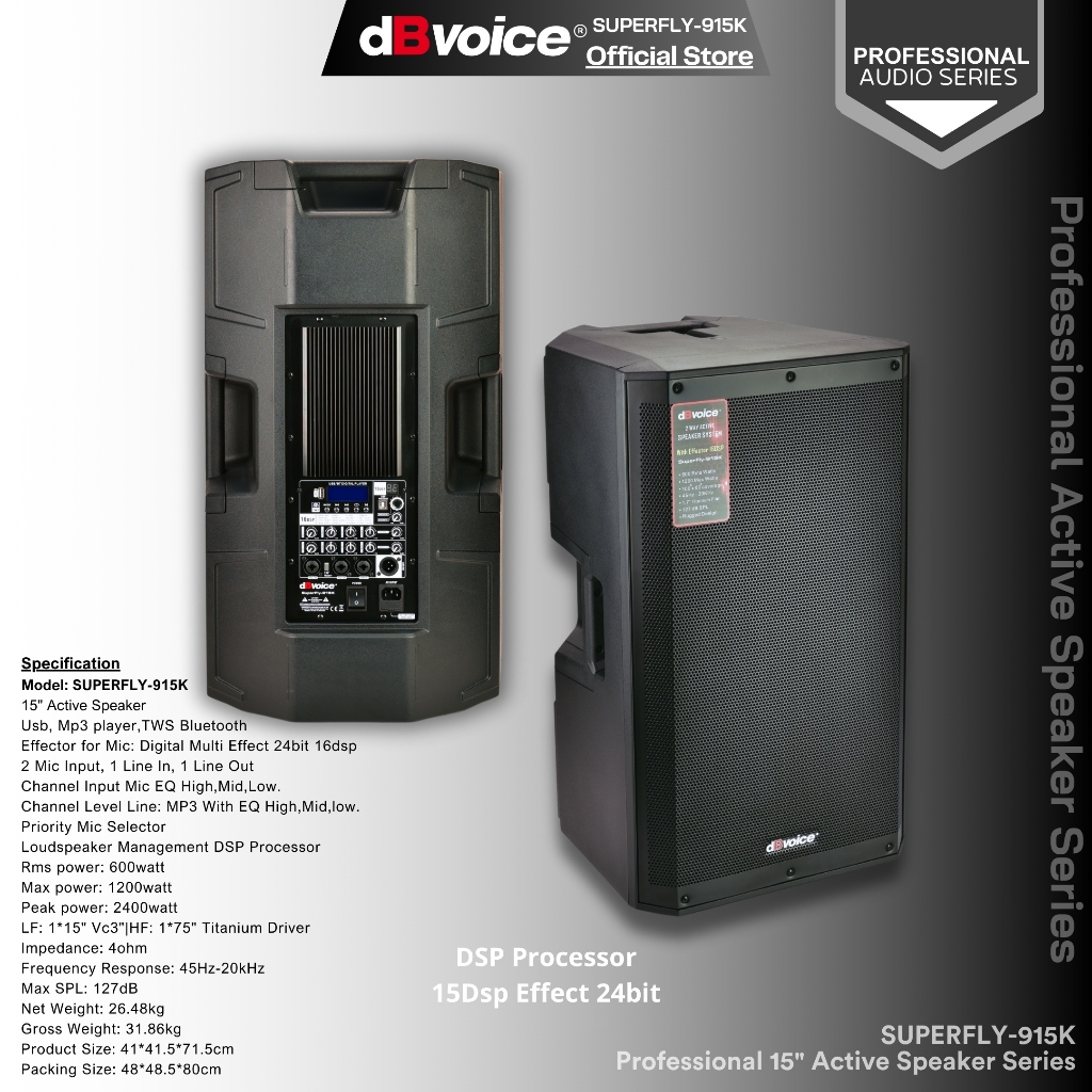 Speaker Aktif 15inch Sudah DSP, USB TWS Bluetooth, 16dsp Efek dBvoice SUPERFLY-915K