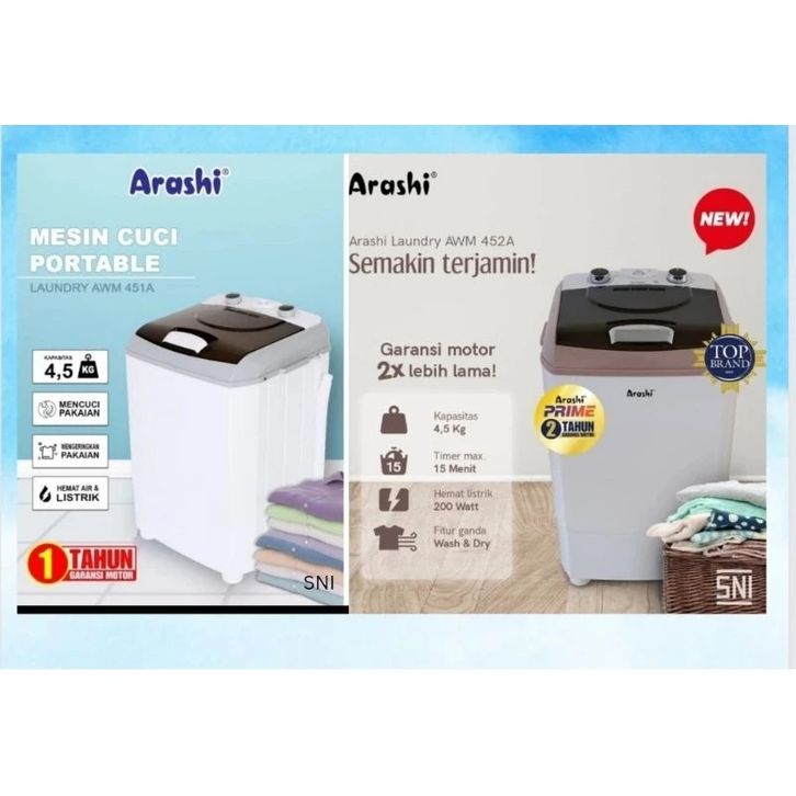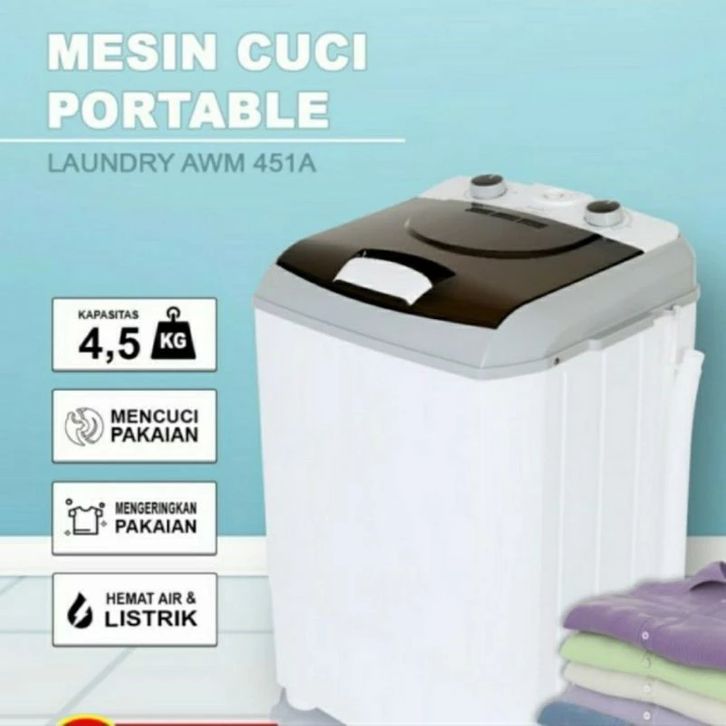 Mesin Cuci Mini Portable ARASHI AWM 451A - 4.5 Kg - Mesin Cuci Kecil - Garansi Resmi