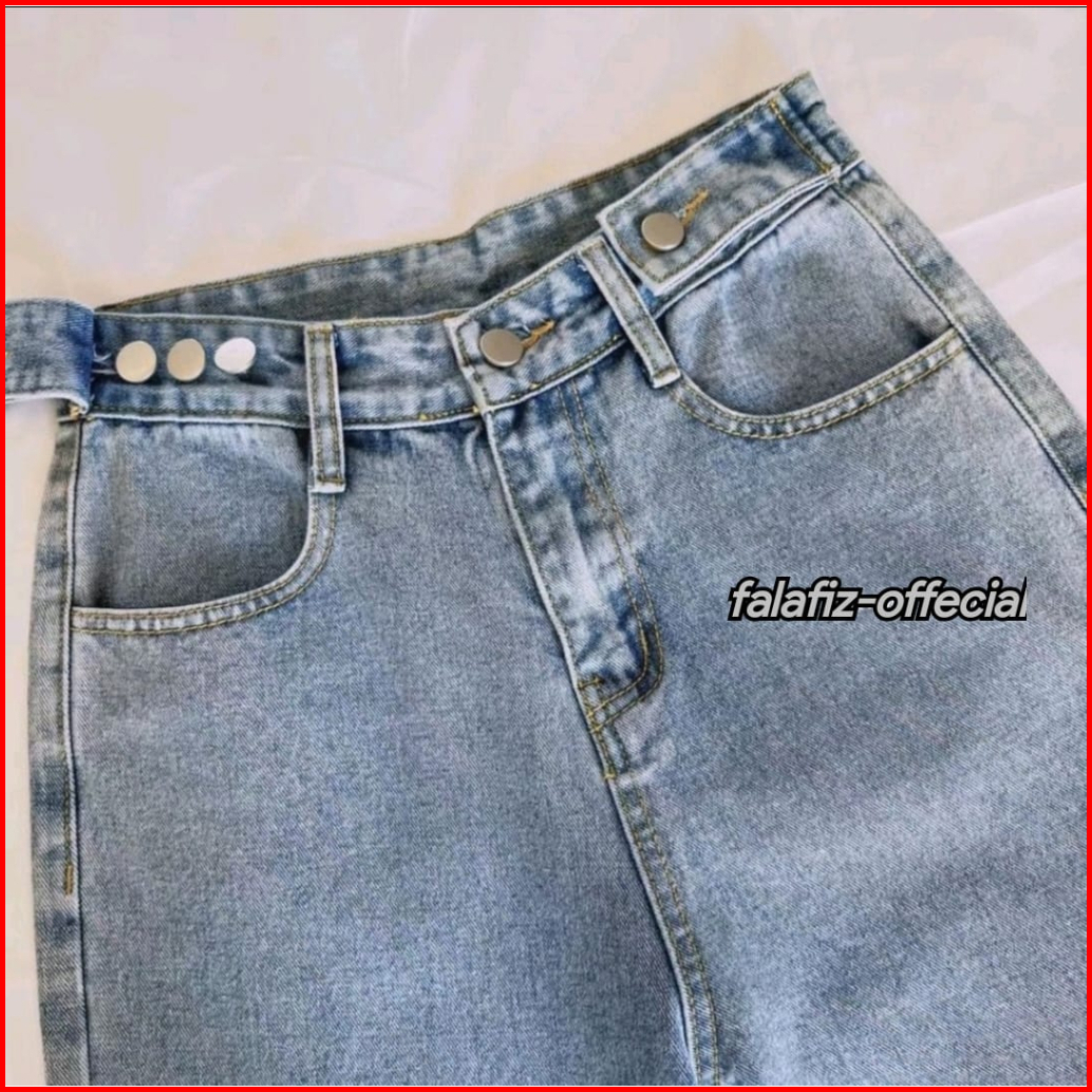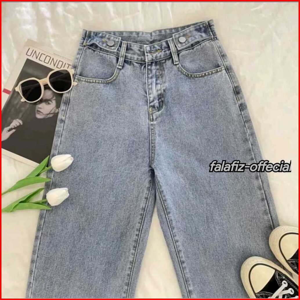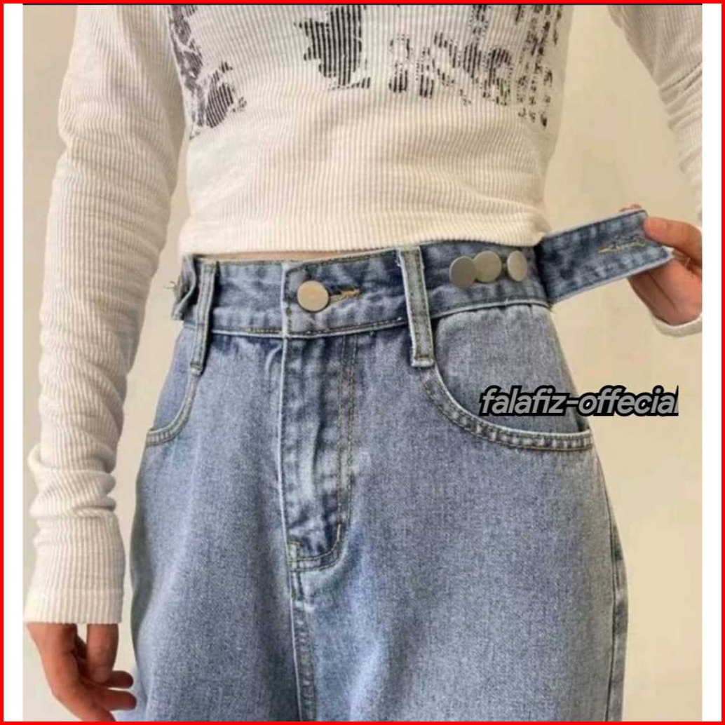 Celana Jeaans Wanita Highwaist Kulot Jeans Pinggang Yang Dapat Diisesuaikan Tripel Kancing
