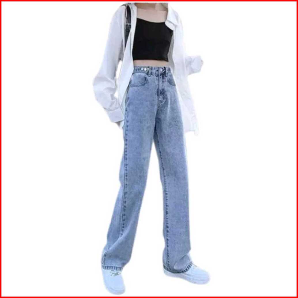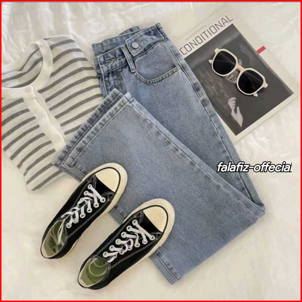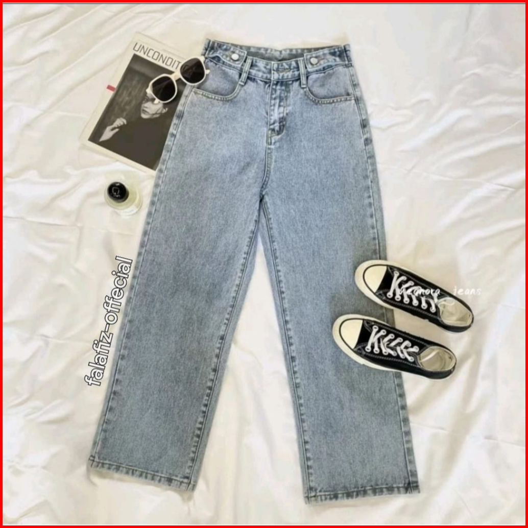 Celana Jeaans Wanita Highwaist Kulot Jeans Pinggang Yang Dapat Diisesuaikan Tripel Kancing