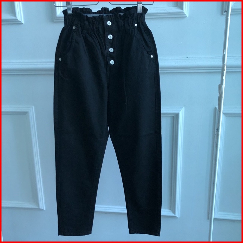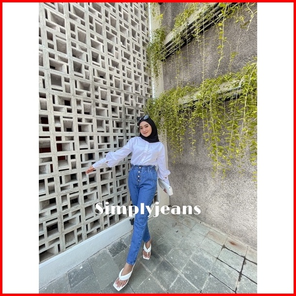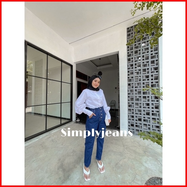 Celana Jeans Boyfriend Wanita Pinggang Karet- Simplyjeans- Jessie 4 Button Baggy Jeans
