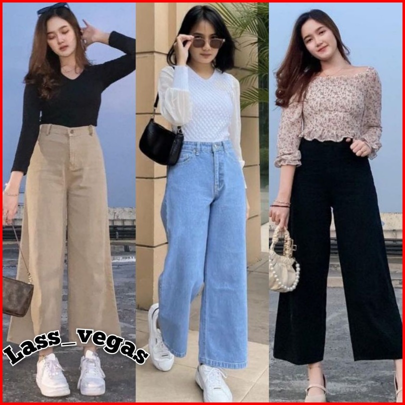New Celana Kulot Jeans Panjang Haigwaist Loose Wanita Mozza Jeans Kulot Warna