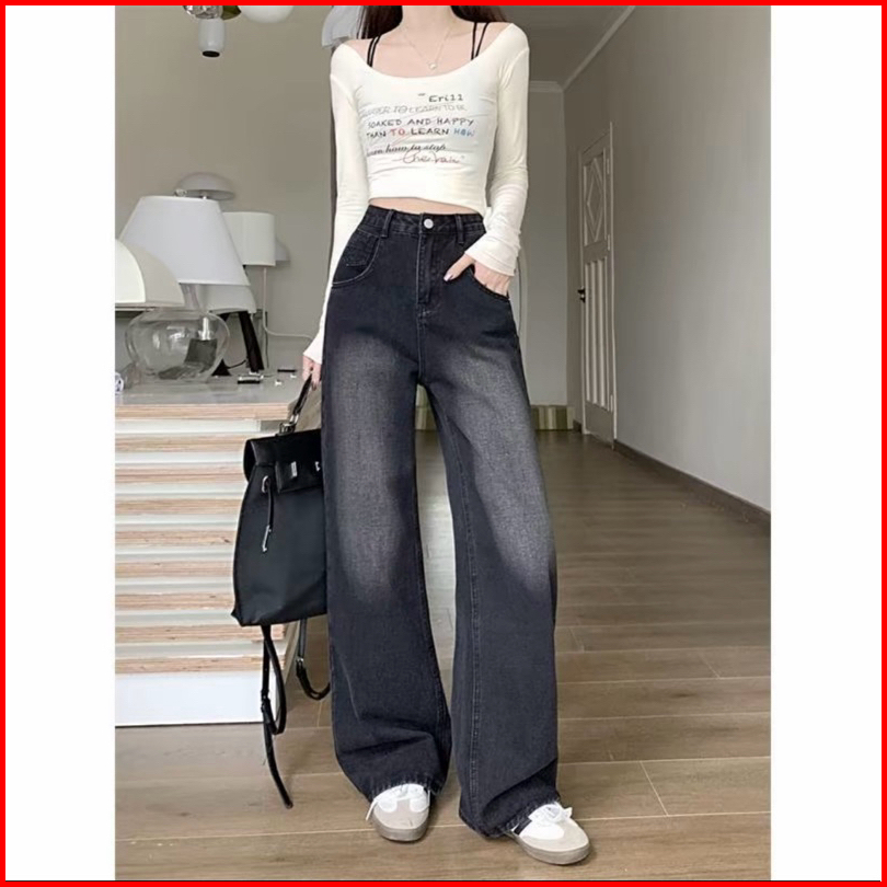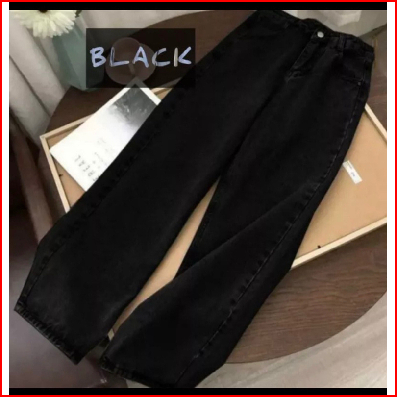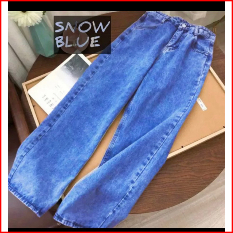 Jeans - Biru Retro Import Highwaist Loose Celana Jeans Panjang Wanita