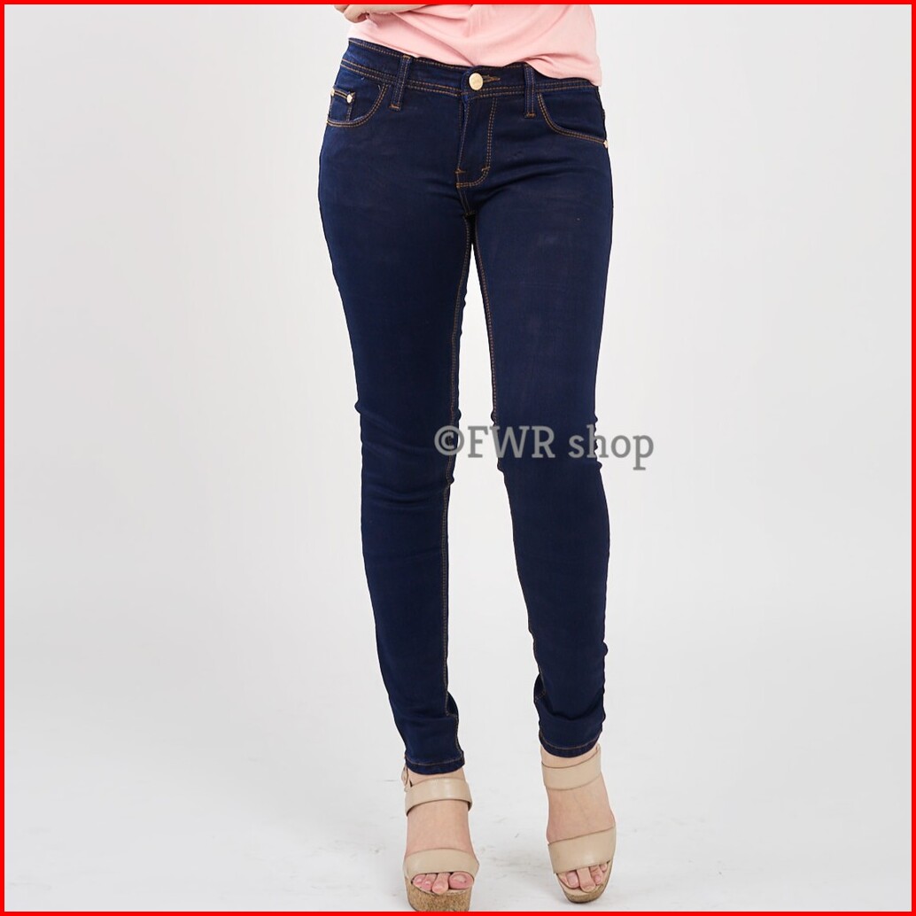 Fwr - Celana Jeans Wanita Basic Biru Dongker Navy Hitam Skinny Jeans Jumbo L Y